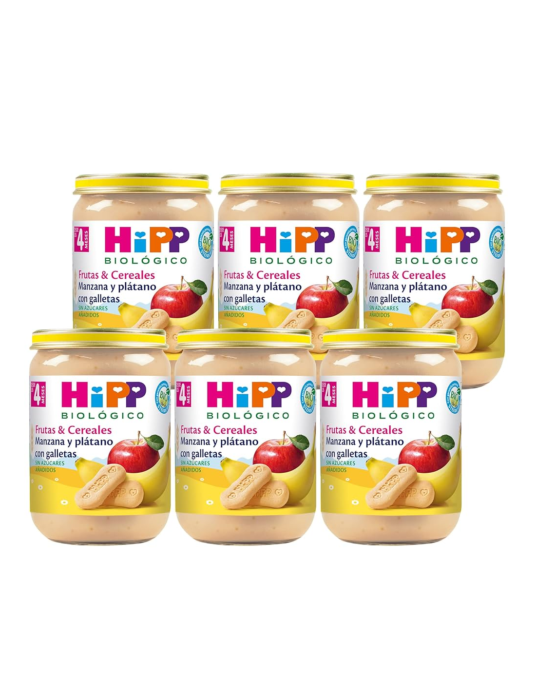 Pack 6 Uds. Tarrito De Manzana Y Plátano Con Galletas Bio 190 g de Hipp