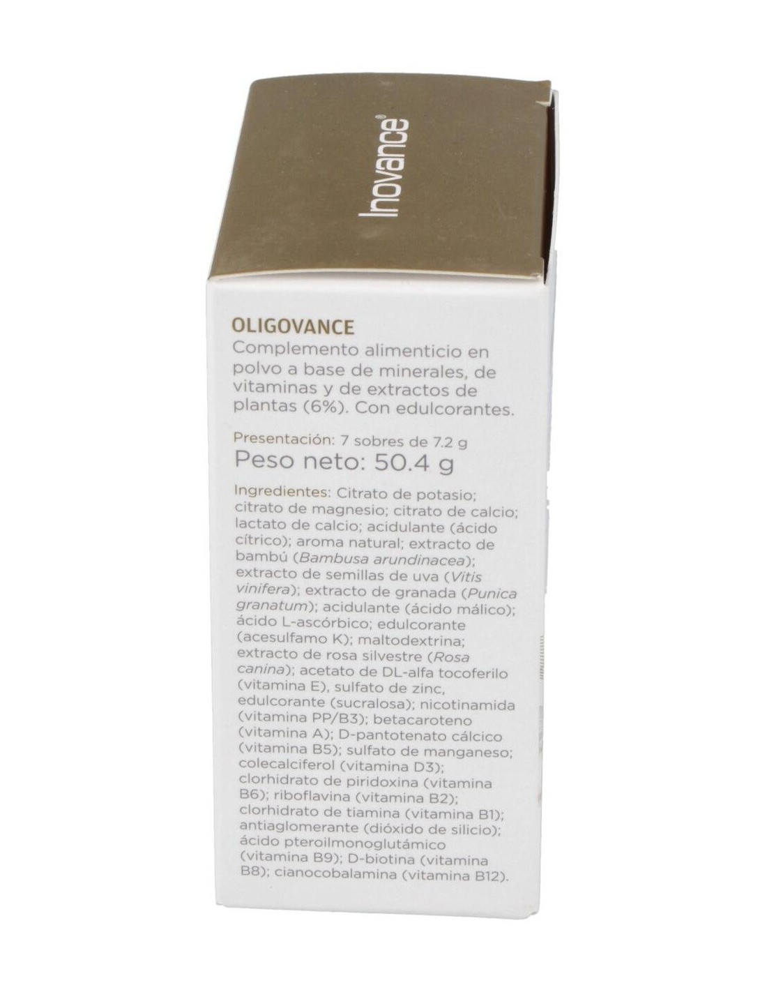 Citrato de potasio: citrato de magnesio: citrato de calcio: lactato de calcio: acidulante (ácido cítrico): aroma natural: extracto de bambú (Bambusa arundinacea): extracto de semillas de uva (Vitis vinifera): extracto de granada (Punica granatum): acidulante (ácido málico): ácido L-ascórbico: edulcorante (acesulfamo K): maltodextrina: extracto de rosa silvestre (Rosa canina): acetato de DL-alfa tocoferilo (vitamina E): sulfato de zinc: edulcorante (sucralosa): nicotinamida (vitamina PP/B3): betacaroteno (vitamina A): D-pantotenato cálcico (vitamina B5): sulfato de manganeso: colecalciferol (vitamina D3): clorhidrato de piridoxina (vitamina B6): riboflavina (vitamina B2): clorhidrato de tiamina (vitamina B1): antiaglomerante (dióxido de silicio): ácido pteroilmonoglutámico (vitamina B9): D-biotina (vitamina B8): cianocobalamina (vitamina B12).