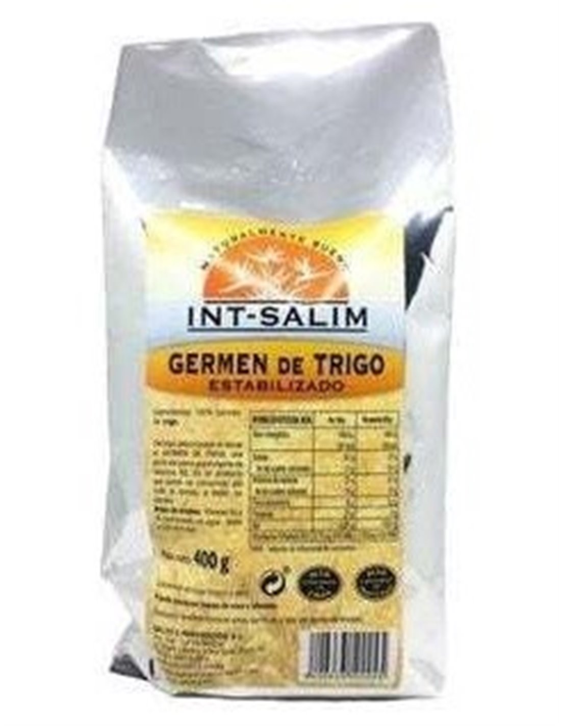 Germen de trigo Int-Salim en polvo para bebidas. Contiene 400 g de producto en el envase.