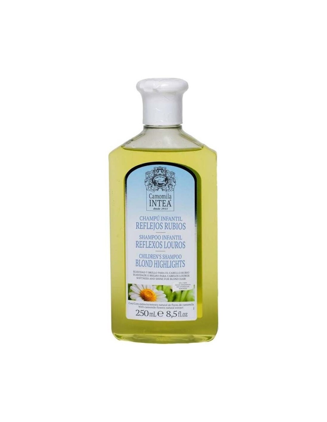 INTEAIndicado especialmente para el lavado del cabello rubio de los niños y para el cabello fino o delicado de los adultos. Su uso habitual produce un aclarado suave, brillo intenso y reflejos rubios. Complemento ideal del spray aclarante rubio infantil Intea® para conseguir un mejor acabado. Formulado por farmacéuticos para el cabello de los niños. El principio activo es el extracto natural de flores de manzanilla. No contiene agua oxigenada ni tintes químicos. Suave y agradable olor de las flores de manzanilla. No contiene siliconas ni parabenos. No testado en animales.