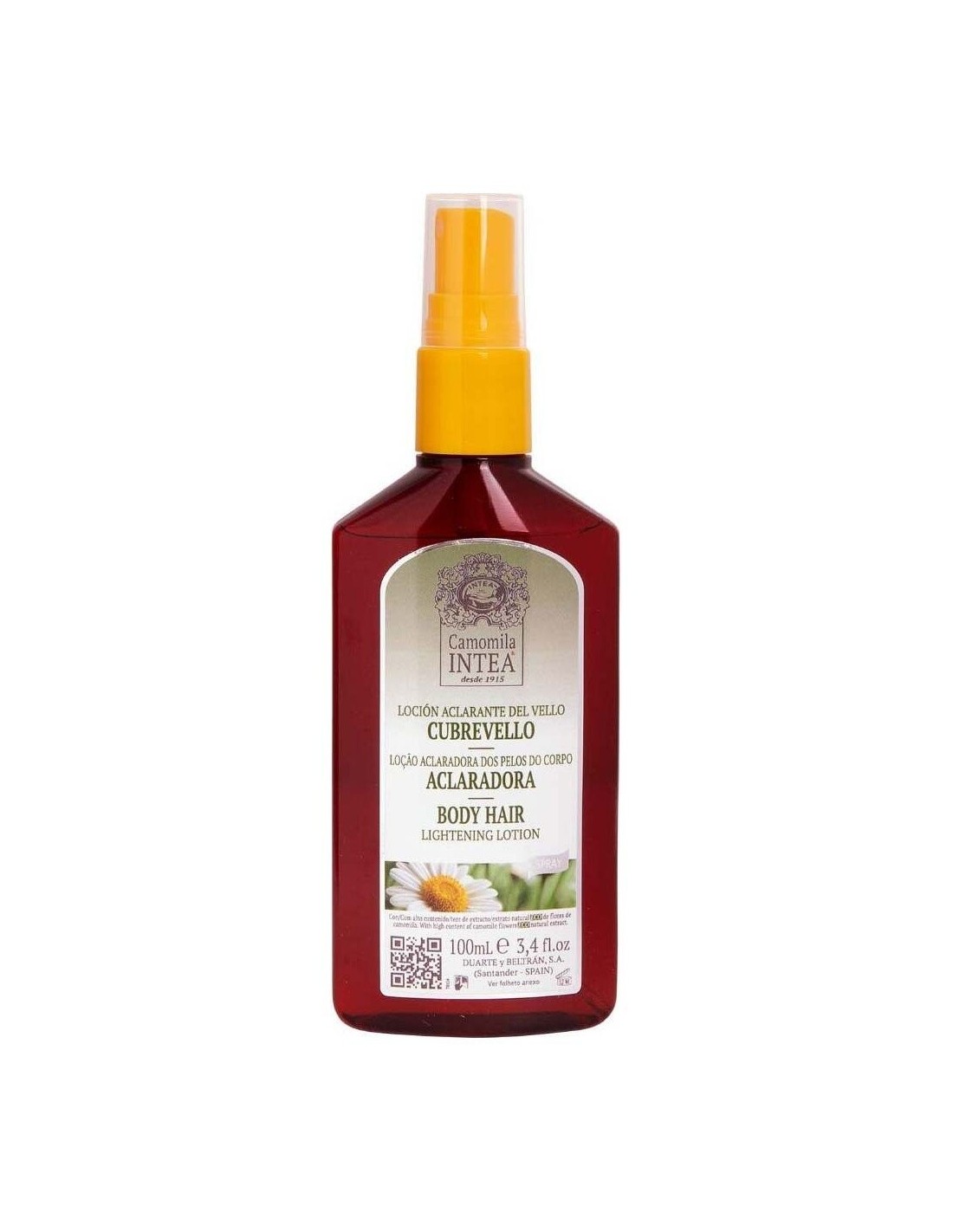 INTEAIndicado para decolorar progresivamente el vello corporal de los adultos haciéndolo casi invisible y evitar así las depilaciones. Su contenido en extracto natural de flores de Camomila ayuda a aclarar el vello y protege la piel. No contiene amoniaco, ni tintes químicos. Fórmula desarrollada y comprobada por farmacéuticos. No contiene siliconas ni parabenos. No testado en animales.