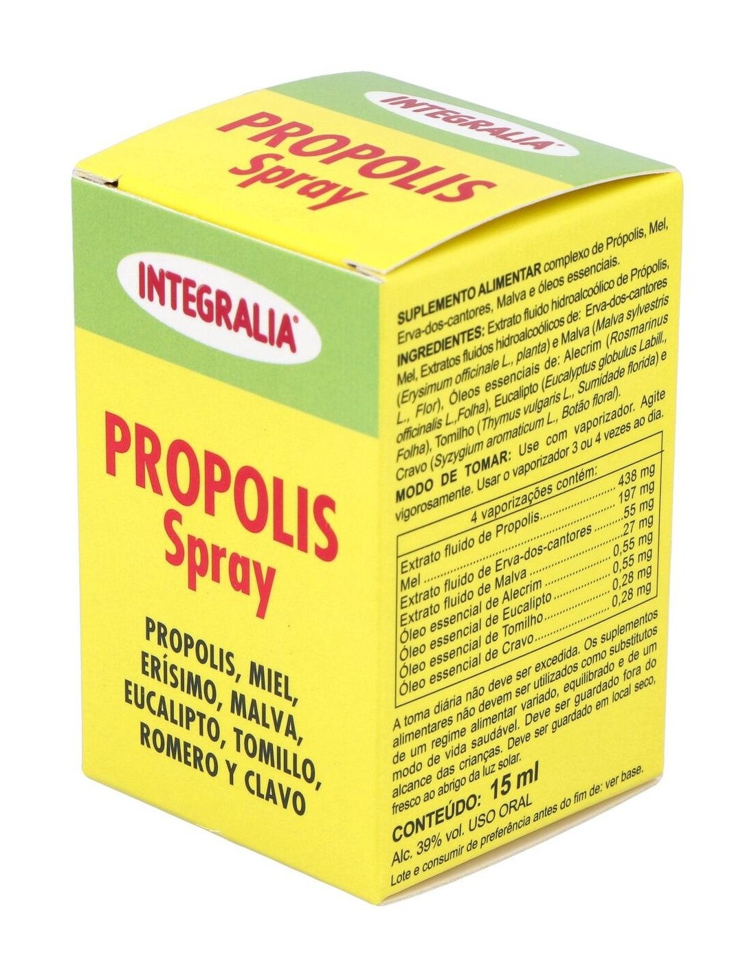 Este pulverizador de propóleo de la marca Integralia es una sustancia extraída de las abejas, que la obtienen de ciertos árboles. Ellas la utilizan para proteger las paredes de sus colmenas pero para los humanos supone un poderoso sistema de defensa. Se utiliza para ayudar a la prevención de resfriados, irritación y dolor de garganta, tos o afonía, entre otras afecciones. Asimismo se recomienda su uso en la cicatrización de heridas y aftas bucales.