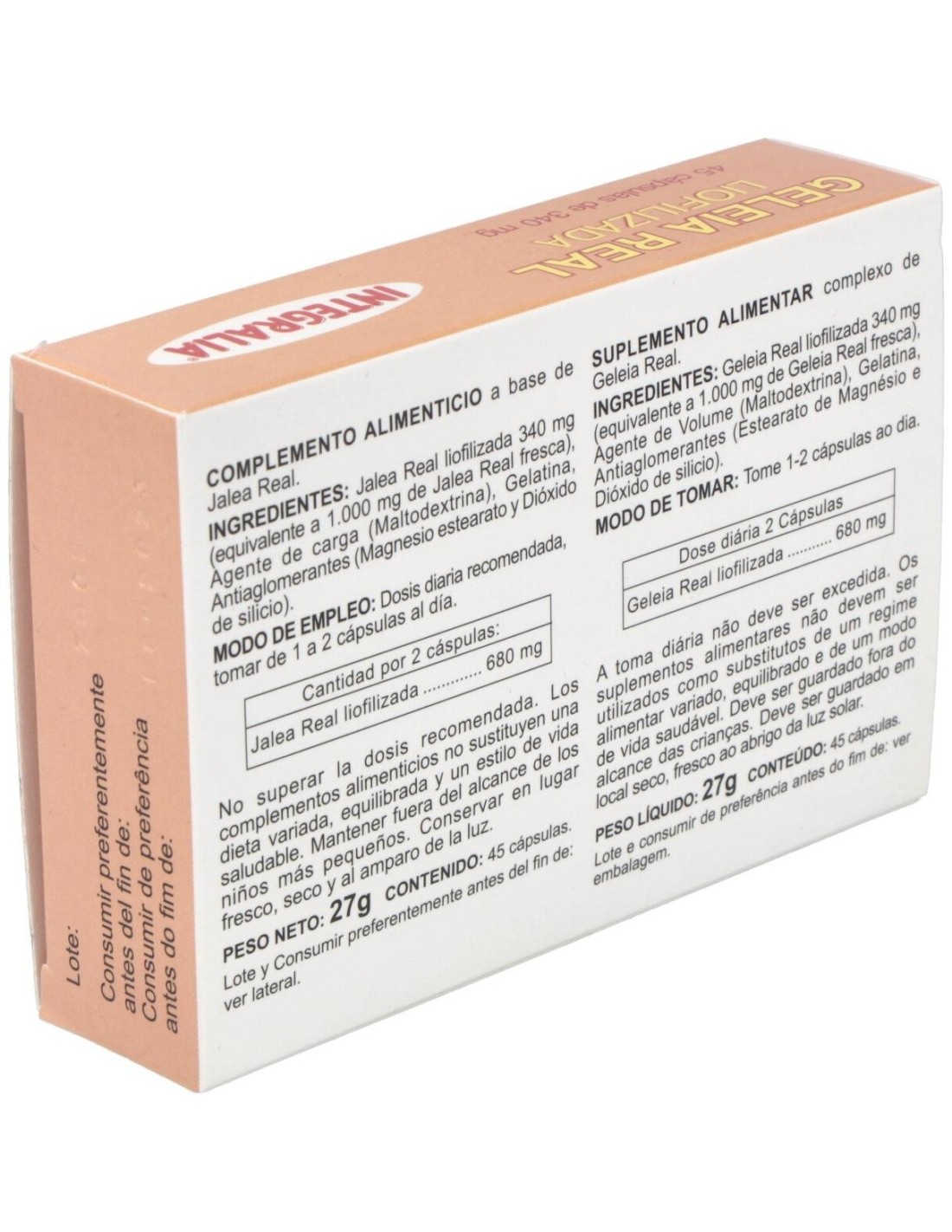 Integralia ha creado esta fórmula con un ingrediente de gran valor alimentario: la jalea real, que estimula el funcionamiento general del sistema nervioso central. Tiene alto contenido en vitaminas del grupo B. Es un producto recomendado para controlar y bajar los niveles de colesterol. Puede ser consumido por personas de cualquier edad. No administrar a niños sin previa consulta a un especialista.