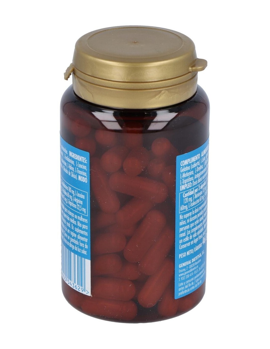Este suplemento de aminoácidos esenciales de Integralia aporta energía y contribuye a mejorar las funciones musculares. Los aminoácidos contribuyen a la construcción de los músculos, ya que estos son los componentes principales de las proteínas. Su acción favorece las reacciones enzimáticas del organismo. Este producto de Integralia puede ser consumido en ciertos casos en combinación con una dieta vegetariana, sin embargo, en ese caso es necesario contar con la opinión de un médico especialista. Se recomienda su consumo especialmente en los casos en los que se haya consumido anteriormente proteínas animales y se requiere equilibrar con nutrientes vegetales equivalentes. La acción de los aminoácidos alivia la sensación de cansancio y facilita la realización de actividades cotidianas. Resulta un complemento para deportistas y para aquellos que realicen cualquier tipo de ejercicios.