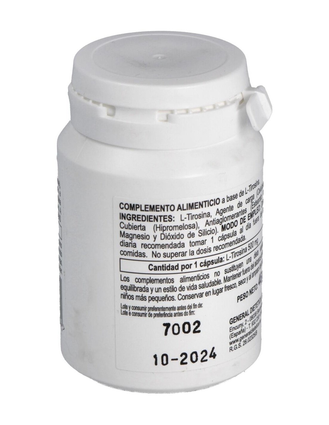 Complemento nutricional en cápsulas recomendado para personas que sufren de mal humor, o decaimiento físico o mental. Este aminoácido en forma libre sirve para complementar la síntesis de dopamina, epinefrina y norepinefrina ( que funcionan como reguladores sinápticos). Además ayuda en funciones como la producción de glóbulos rojos y blancos.