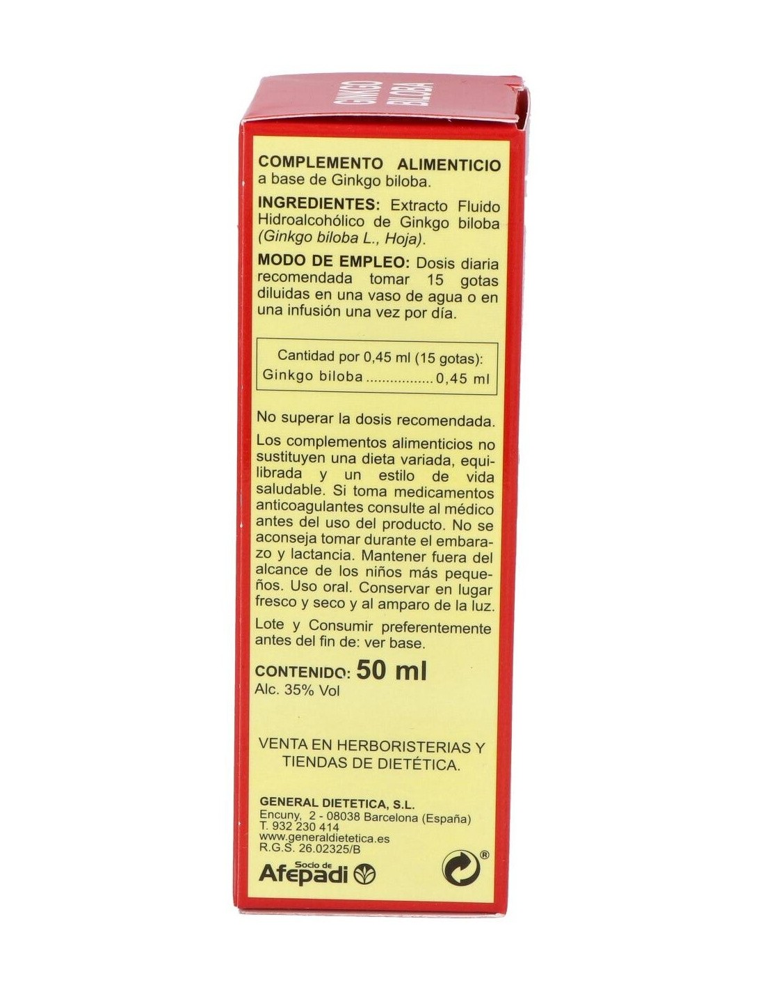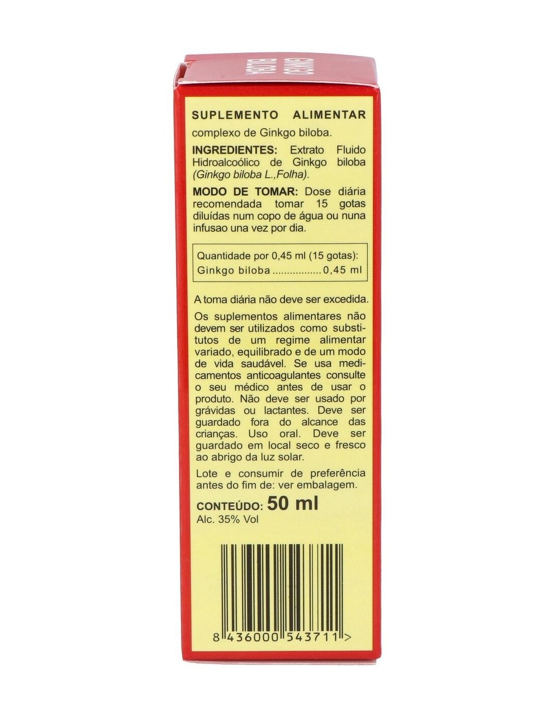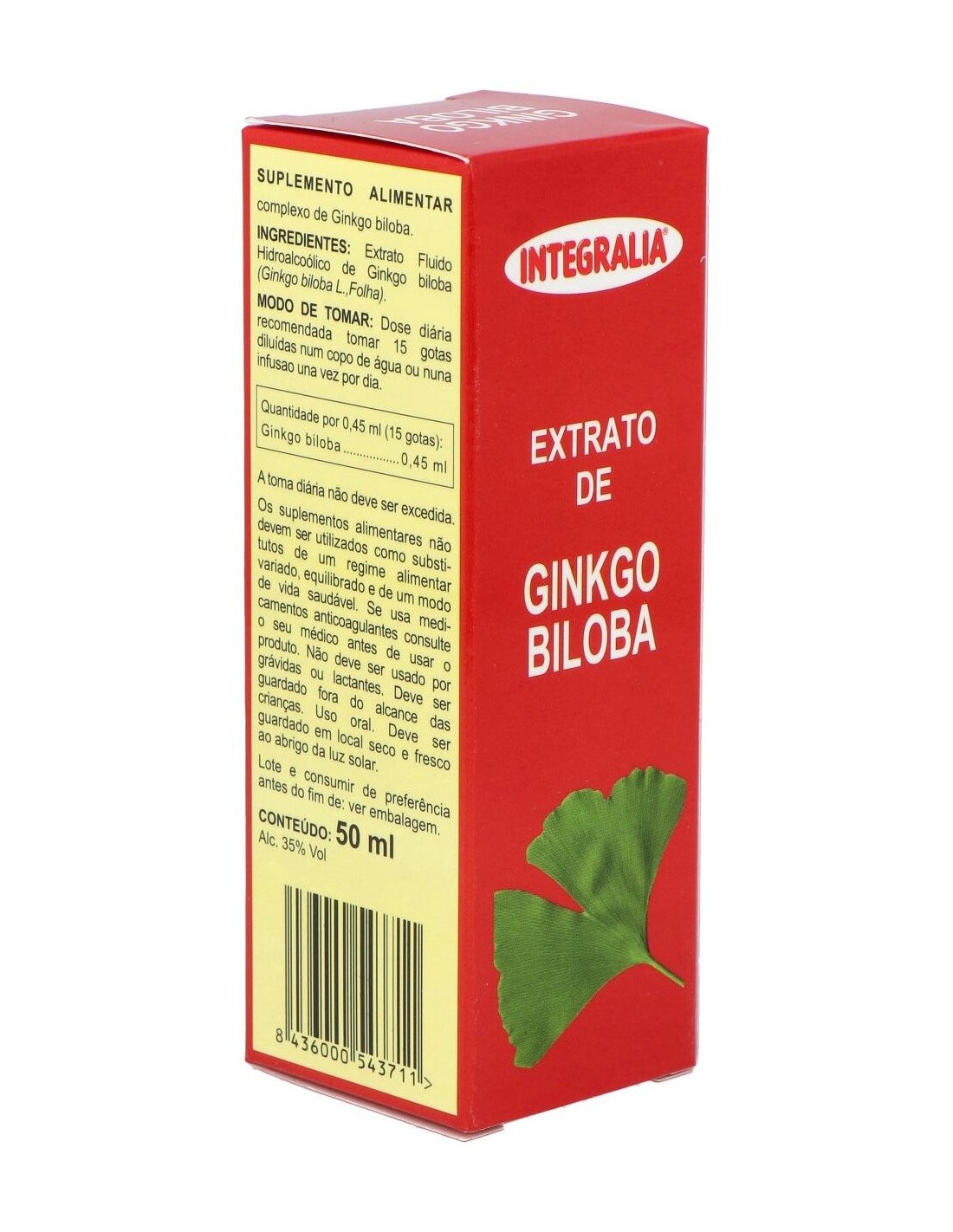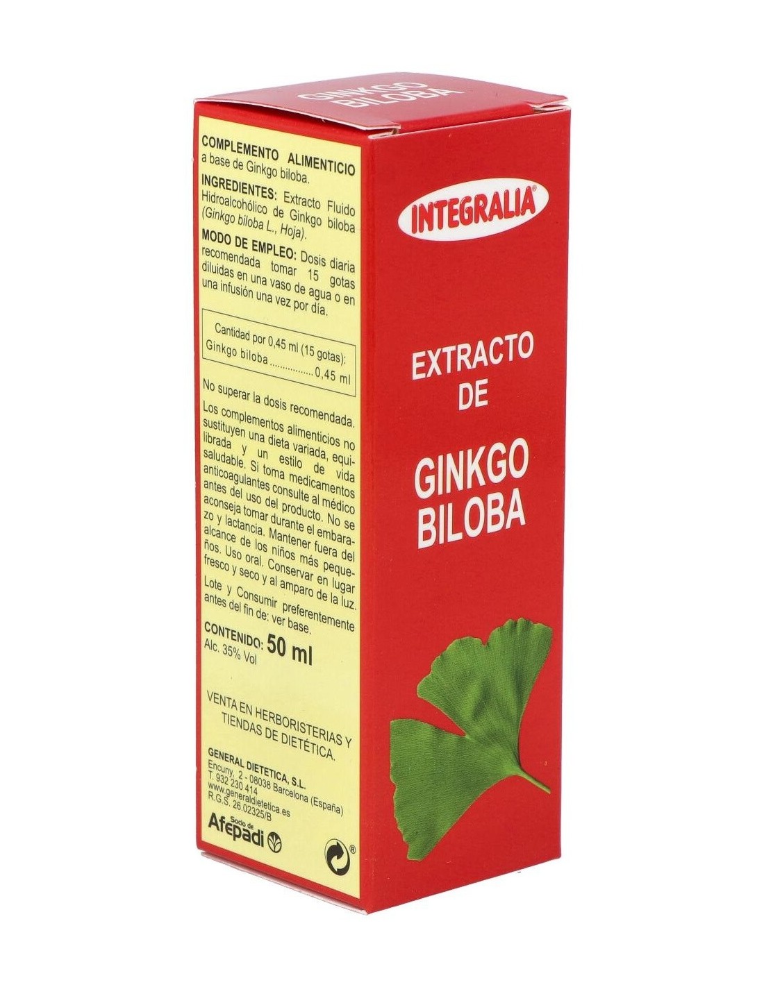 Extracto de ginkgo biloba (nogal de Japón) elaborado por Integralia. Su ingrediente activo con alto contenido de flavonoides ayuda en los tratamientos de trastornos circulatorios relacionados con el envejecimiento, las inflamaciones y los problemas de la piel. Su fórmula de hierbas concentradas está compuesta con la intención de facilitar que se consuma en forma de infusión y que sea de fácil preparación. La dosis recomendada son 15 gotas al día. Para su ingesta se puede diluir en un vaso de agua, zumo o infusión. Si se encuentra bajo tratamiento médico consulte a un especialista antes de consumir este producto. No se recomienda su consumo durante el embarazo o la lactancia. Coloque el recipiente correctamente cerrado en un lugar libre de humedad y sin exceso de luz. Manténgase alejado del alcance de los niños.