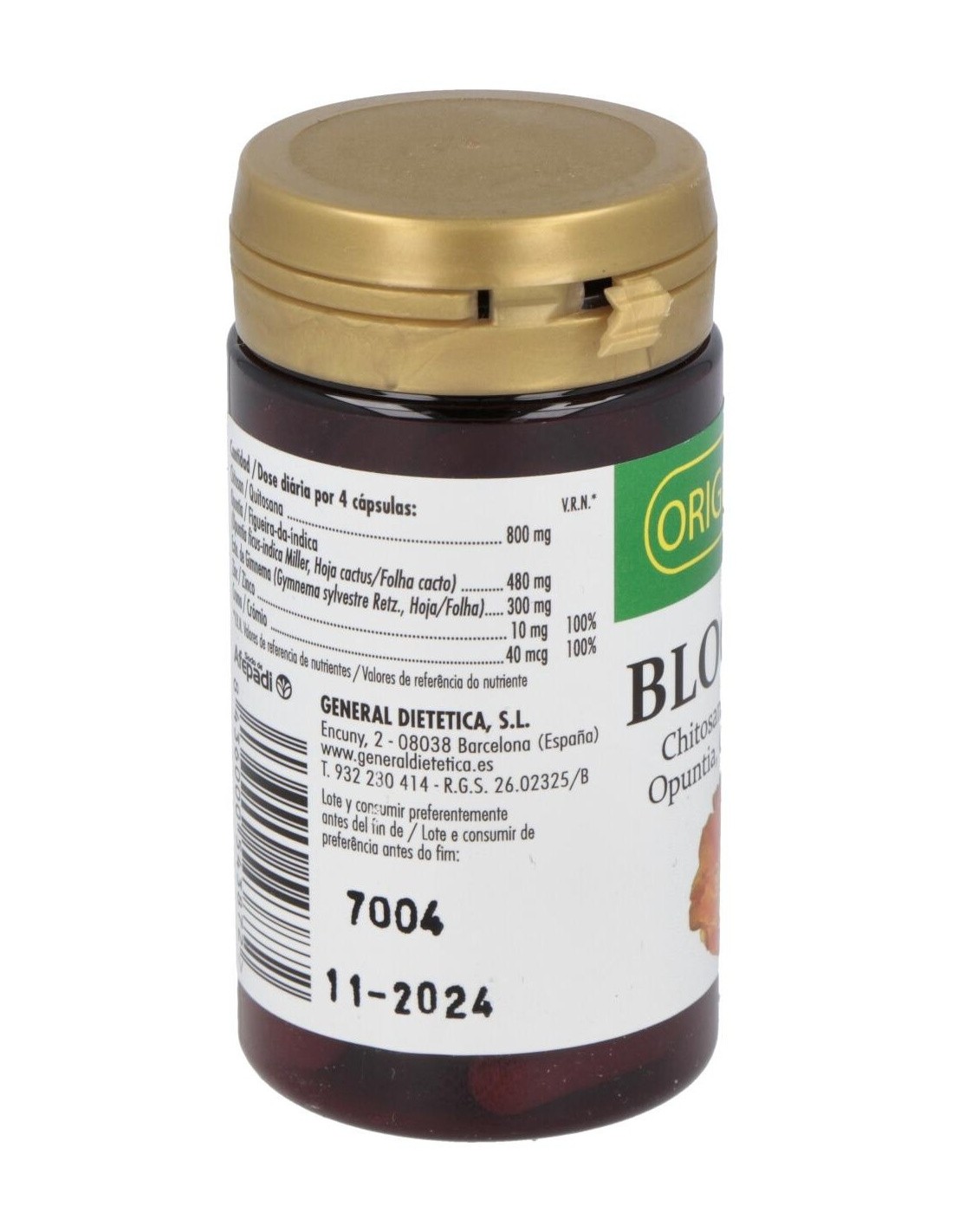 Complemento nutricional que ayuda a bloquear la absorción de grasas e hidratos de carbono de los alimentos. Contiene Chitosán, Gimnema, Opuntia, Cromo y Zinc. Favorece y complementa la pérdida de peso junto a una buena alimentación. Su contenido en fibra y plantas favorece la sensación de saciedad, ayuda a mantener estables los niveles de azúcar, evitando el picoteo.