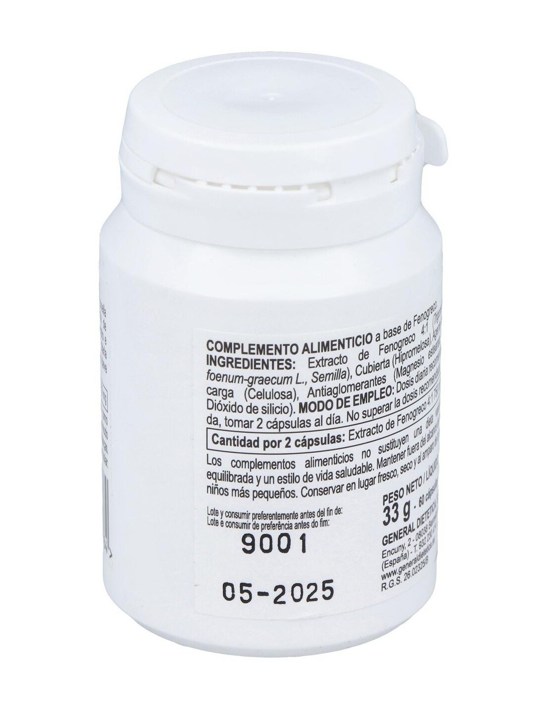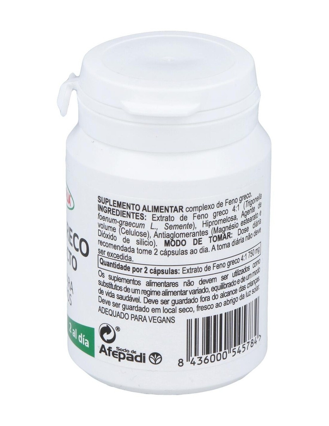 Complemento alimenticio en formato cápsulas, elaborado a base de extracto de fenogreco ecológico. El fenogreco se destaca por su capacidad terapéutica como tónico digestivo. En su composición abunda el contenido de albúmina, grasas e hidratos de carbono. Con mucílagos, que contribuyen a proteger la mucosa estomacal. Favorece el equilibrio hormonal durante la menopausia y el síndrome premenstrual.