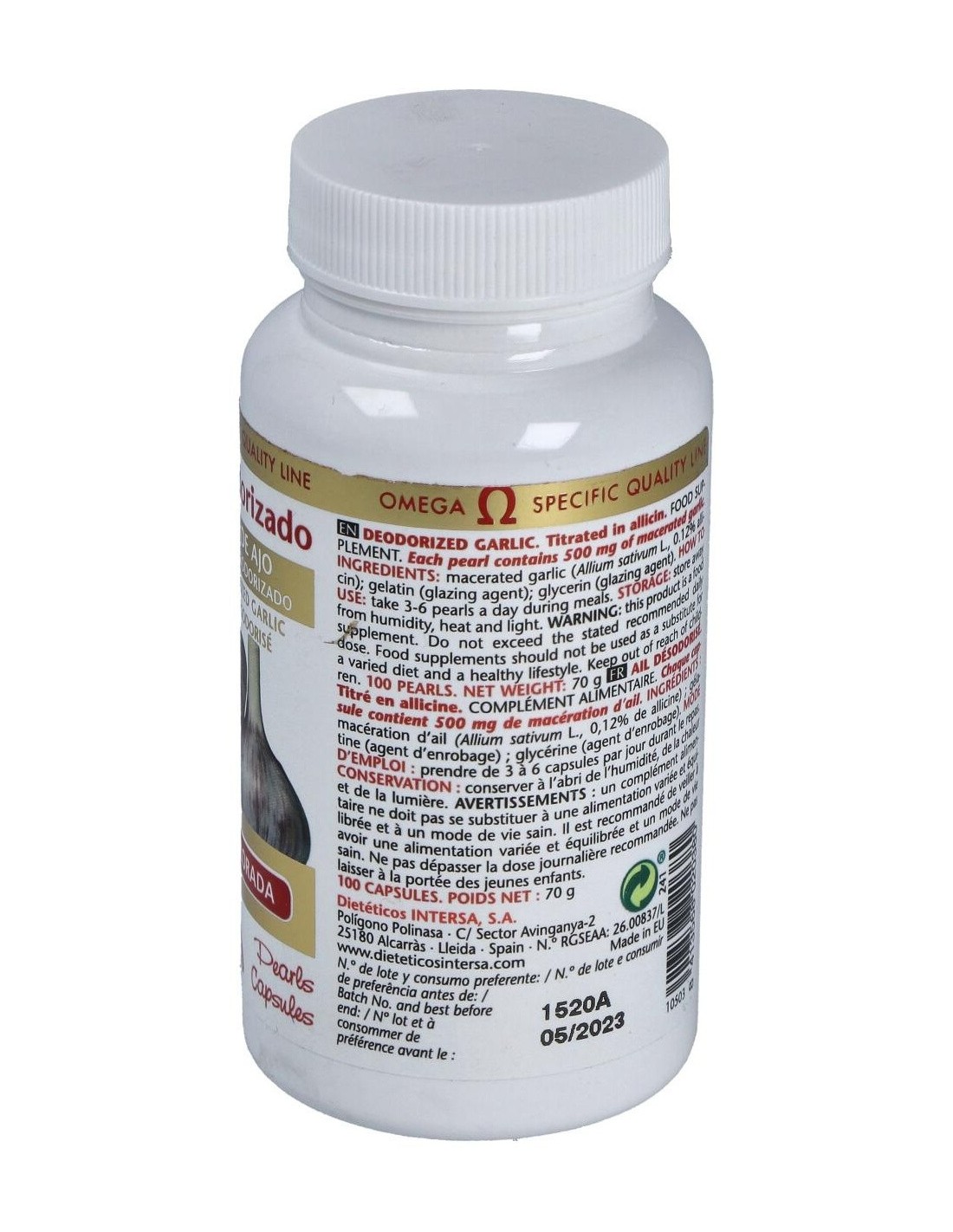 Dietéticos Intersa ajo desodorizado es un complemento alimenticio muy beneficioso para mejorar la salud cardiovascular, impidiendo alteraciones como infartos o anginas de pecho. Mejora el riego sanguíneo y regula la tasa de colesterol en sangre, mejorando la actividad de tu corazón.