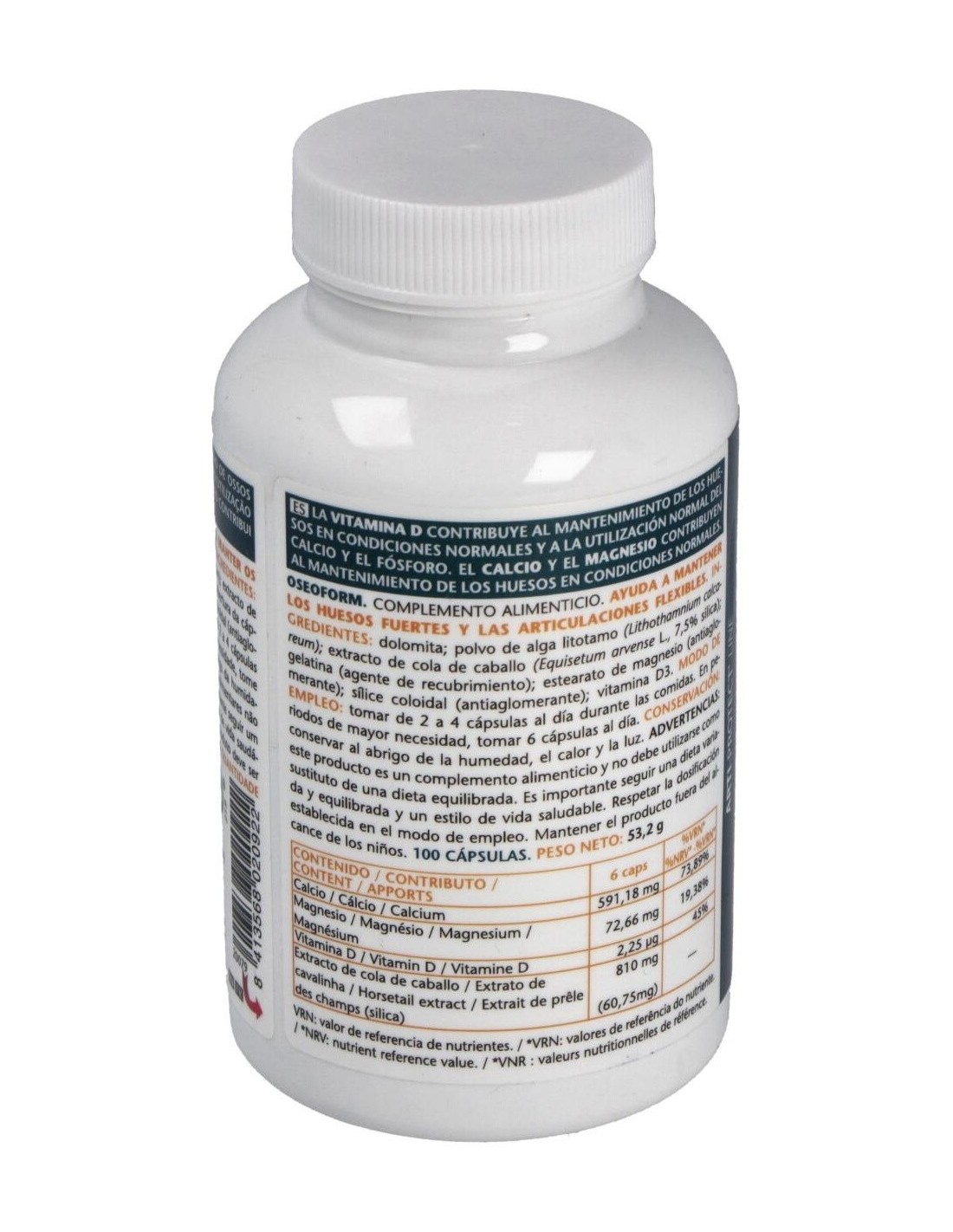 Complemento alimenticio que favorece el mantenimiento de articulaciones flexibles y huesos fuertes. Ayuda a tratar la osteoporosis, osteomalacia, remineralizante general, remineralizante después del deporte, flacidez del tejido muscular, dolores musculares y articulares, artritis y artrosis, crecimiento, caída del cabello y uñas, refuerzo del tejido conjuntivo venoso y arterial, arteriosclerosis, gastritis y úlcera gastroduodenal.