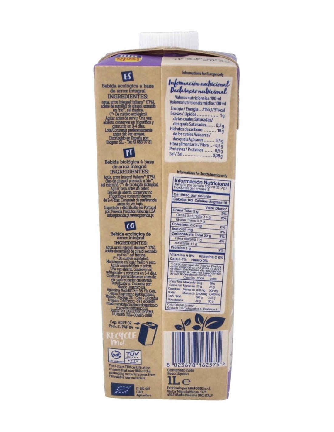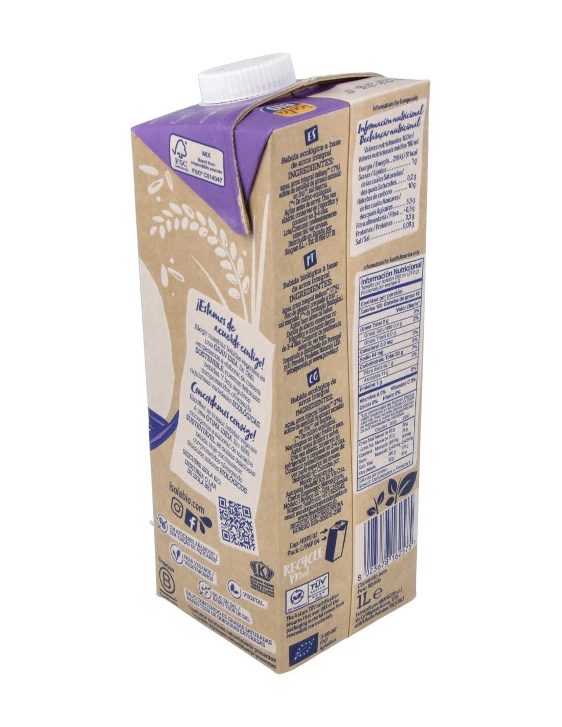 Bebida Vegetal De Arroz Integral 1Lt 6Uds. S/A de Isola