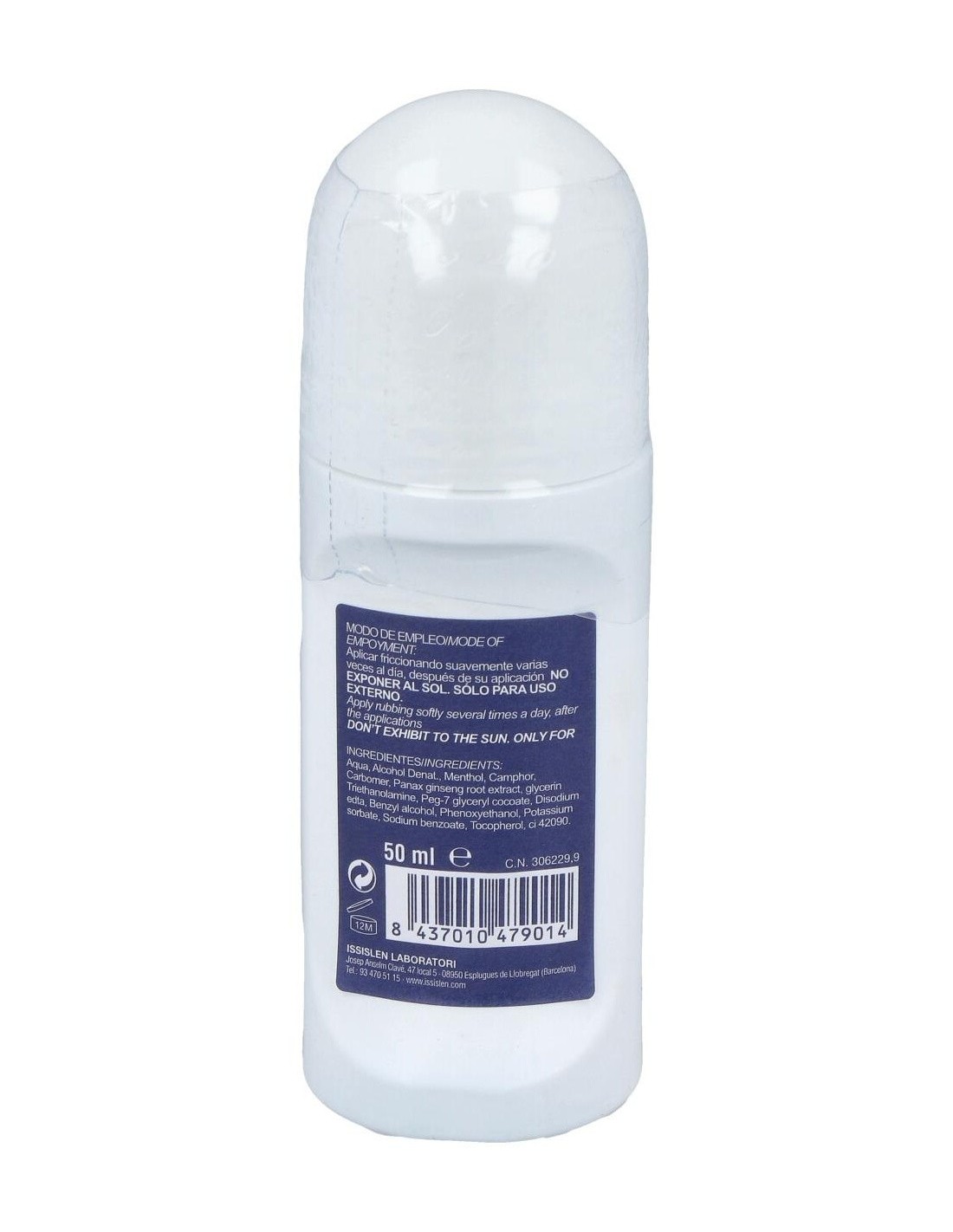 Aqua, Alcohol denat., Menthol, Camphor, Carbomer, PEG-7 Glyceryl Cocoate, Eleuterococo, Triethanolamine, Phenoxyethanol, Methylparaben, Butylparaben, Ethylparaben, Propylparaben.