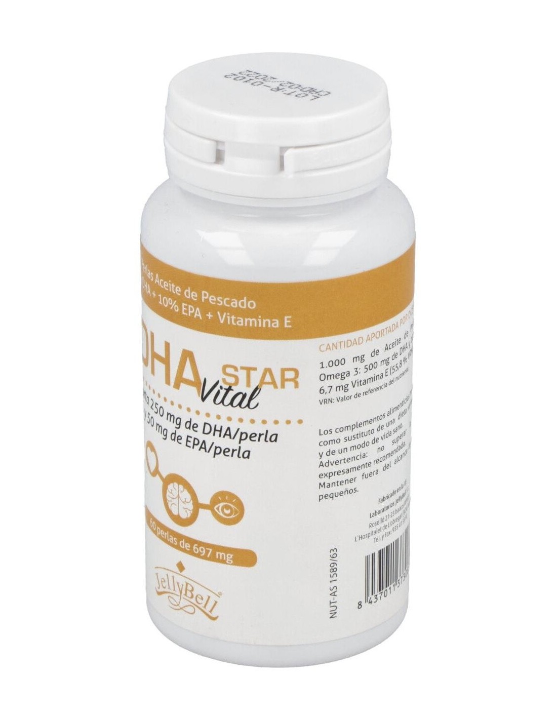 1000 mg de aceite de pescado (aporta omega 3: 500 mg de DHA y 100 mg de EPA), 6,7 mg vitamina E.