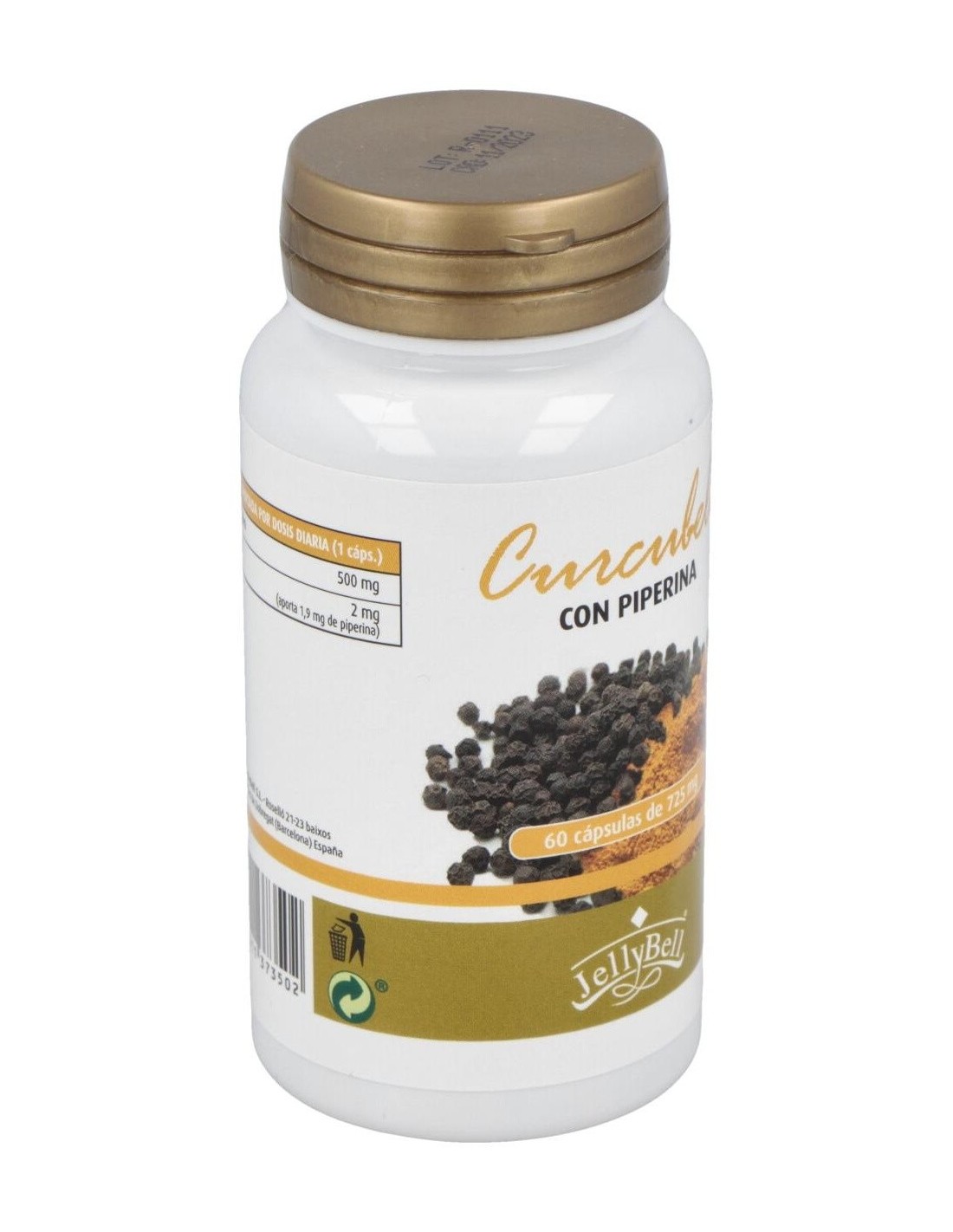500 mg Cúrcuma longa polvo, 2 mg Bioperine (Extracto de pimienta negra con un 95% en piperina).