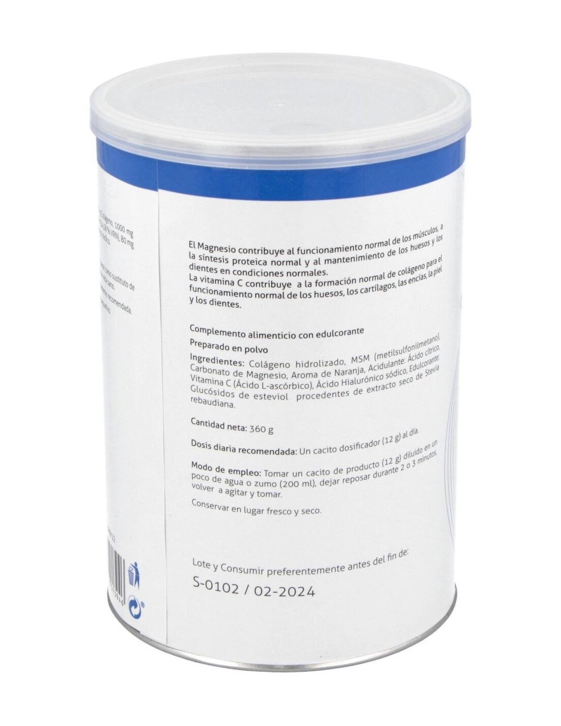 Complemento alimenticio de colágeno hidrolizado en polvo de última generación, combinado con otros ingredientes activos como el magnesio, MSM, Vitamina C y ácido hialurónico. Además, contiene agradable sabor a naranja. La composición contribuye a mantener la salud de tus huesos y articulaciones. El magnesio contribuye al funcionamiento normal de los músculos, a la síntesis proteica normal y al mantenimiento de los huesos y los dientes en condiciones normales. La vitamina C contribuye a la formación normal de colágeno para la correcta formación de huesos, cartílagos, encías, piel y dientes.