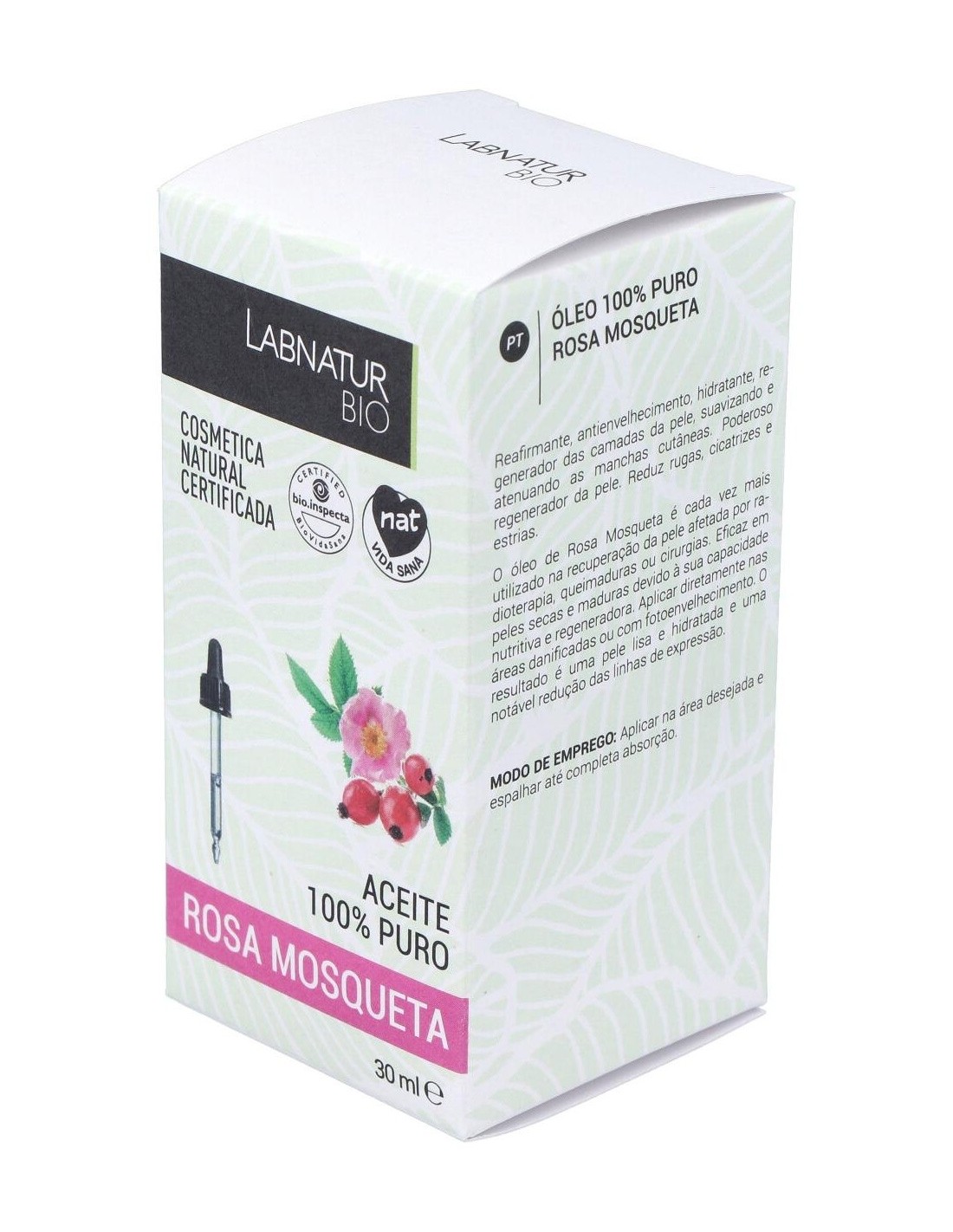 Aceite de rosa mosqueta 100% puro y procedente de la agricultura ecológica certificada. El aceite de rosa mosqueta contiene propiedades hidratantes, revitalizantes y regeneradoras, que favorecen la luminosidad del cutis, ayudan a disminuir la hinchazón de ojos y a la reducción de arrugas. Además favorece la disminución de manera visible de manchas y cicatrices recientes, ya que es un excelente regenerador de la piel.