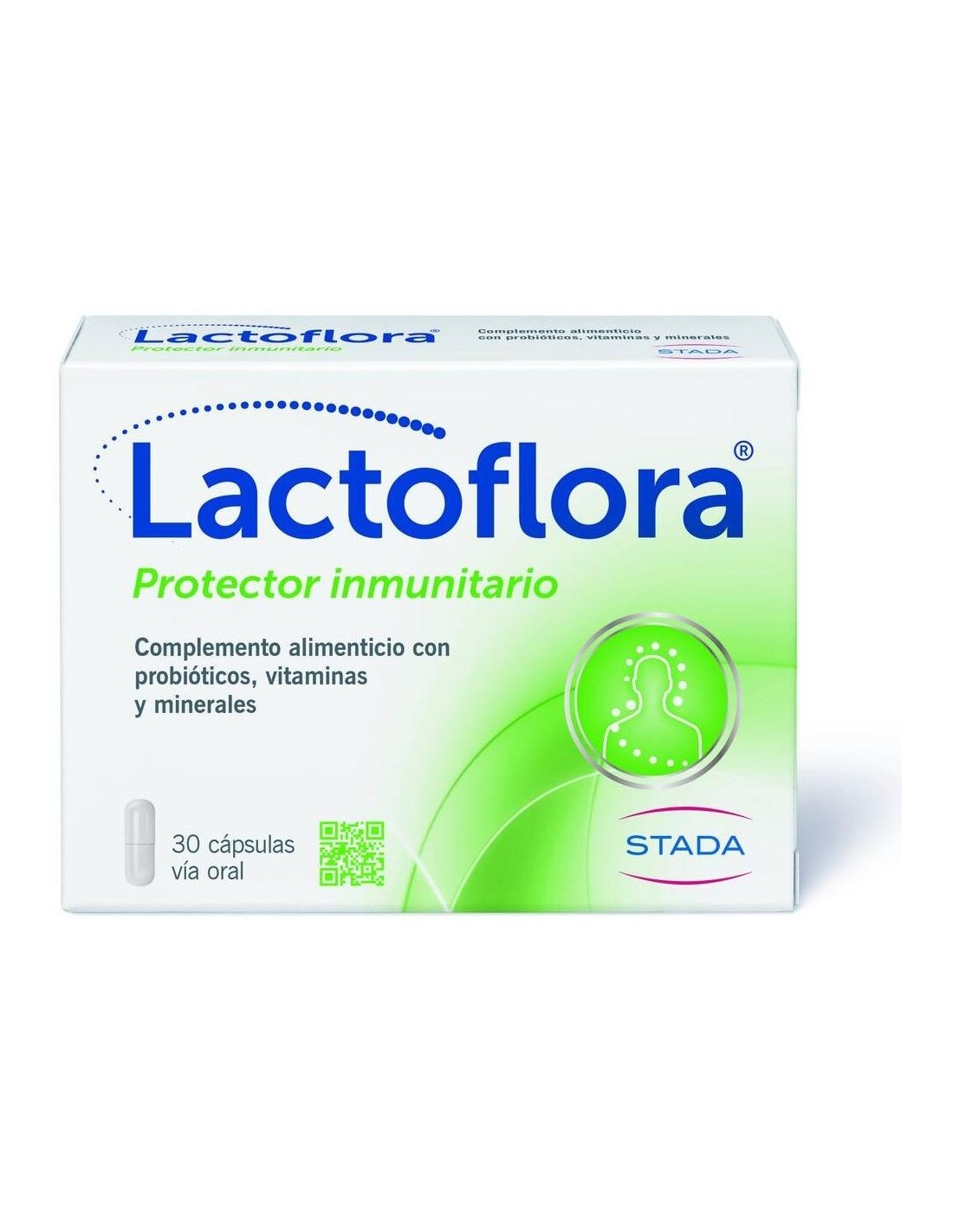 Lactoflora Probiótico Protector Inmunitario para Adultos 30caps es un complemento alimenticio con lactobacilos, vitaminas y minerales que ayuda al buen funcionamiento del sistema inmunitario.