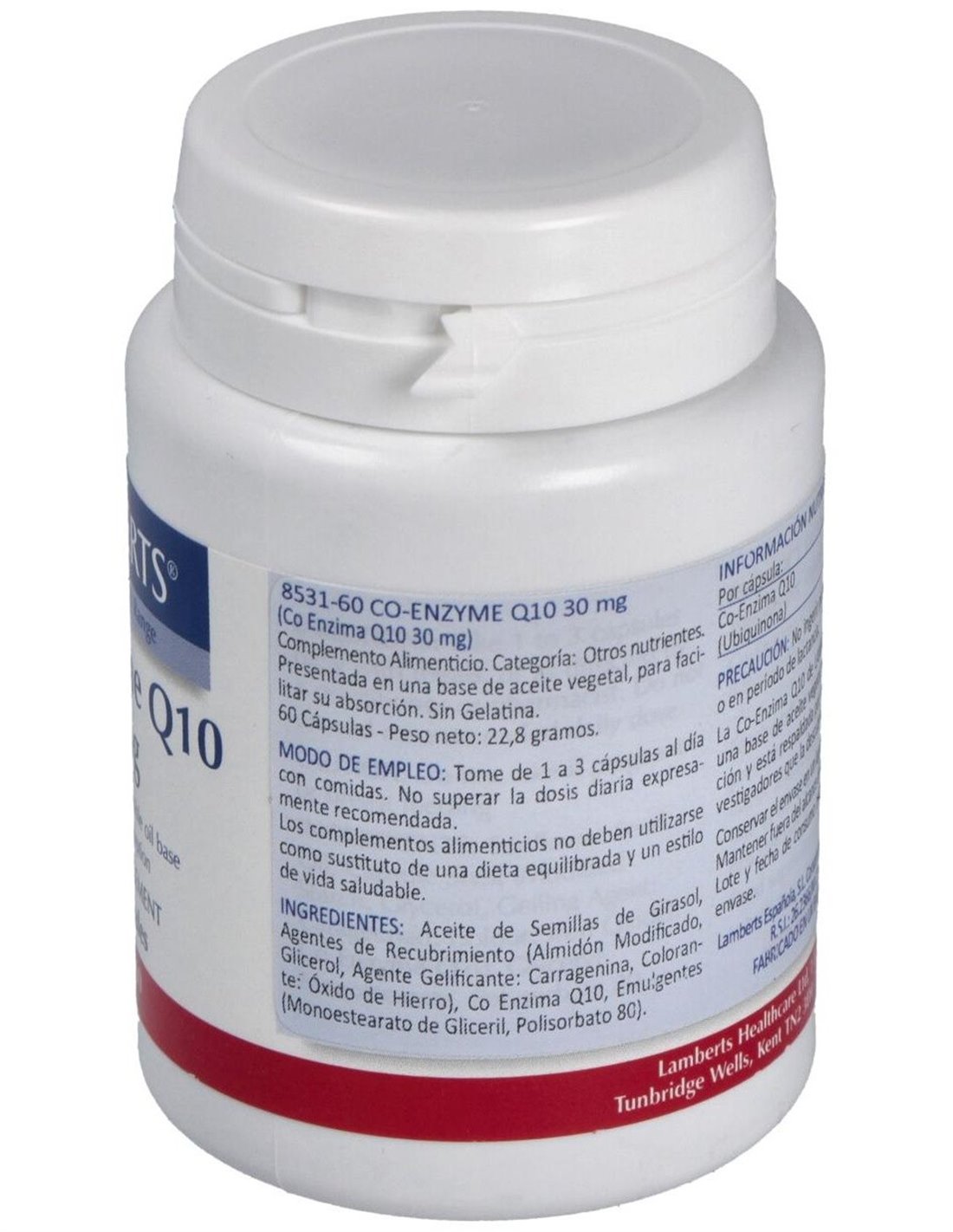 Lamberts Co Enzyme Q10 es un complemento alimenticio rico en coenzima Q10 que contribuye a la producción de energía de la comida.