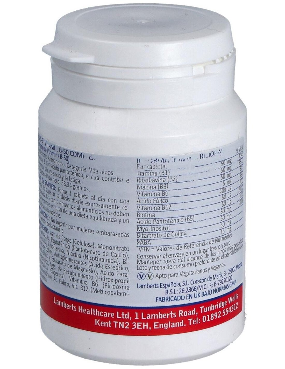 Este producto aporta una alta concentración de vitaminas del complejo B: Tiamina, Riboflavina, Niacina, Piridoxina, Vitamina B12, Biotina, Ácido Pantotenico, Inositol, Bitartrato de Colina y Ácido Fólico. Apto para veganos y vegetarianos.