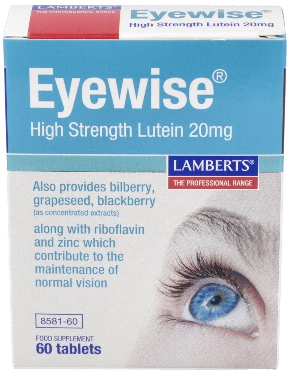 Lamberts Eyewise es un suplemento con luteína, zinc y vitamina B que ayuda a mantener el estado normal de la visión, proteger las células del daño oxidativo y cuidar el estado de los vasos sanguíneos del ojo.