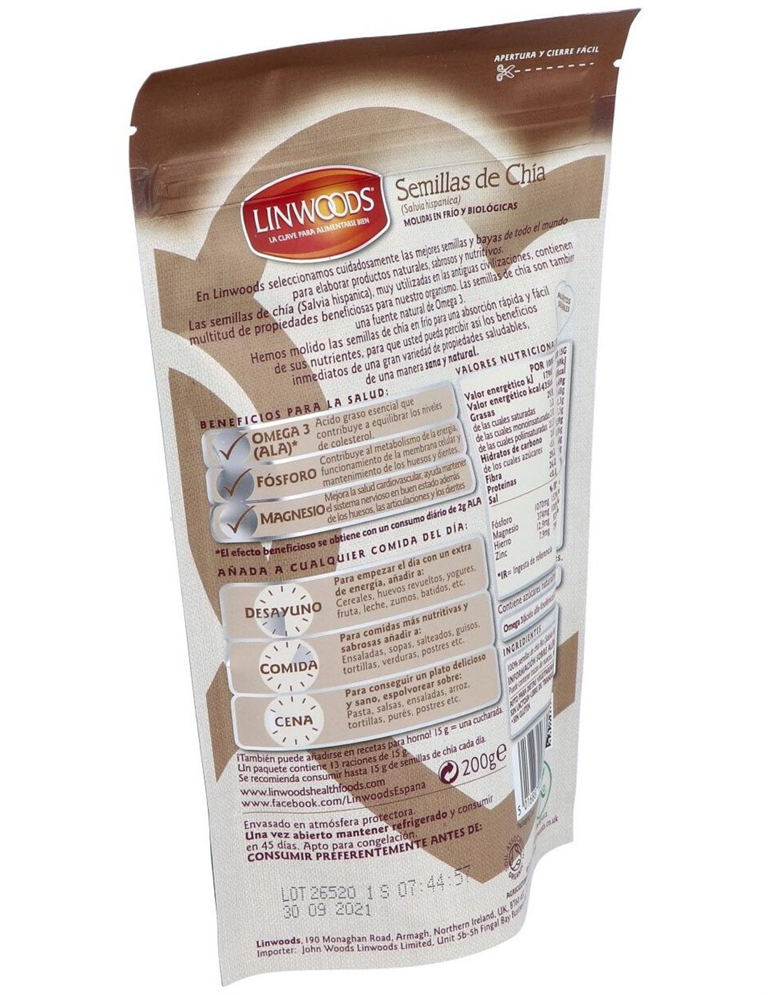 Semillas De Chia Molidas 200Gr. Bio de Linwoods
