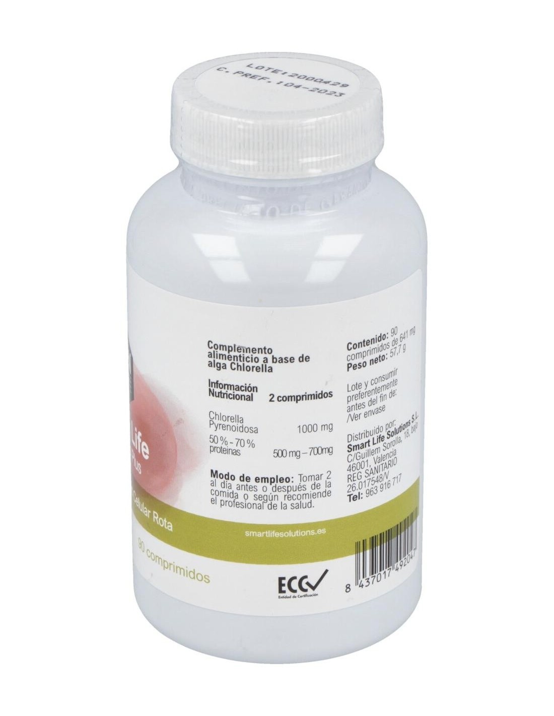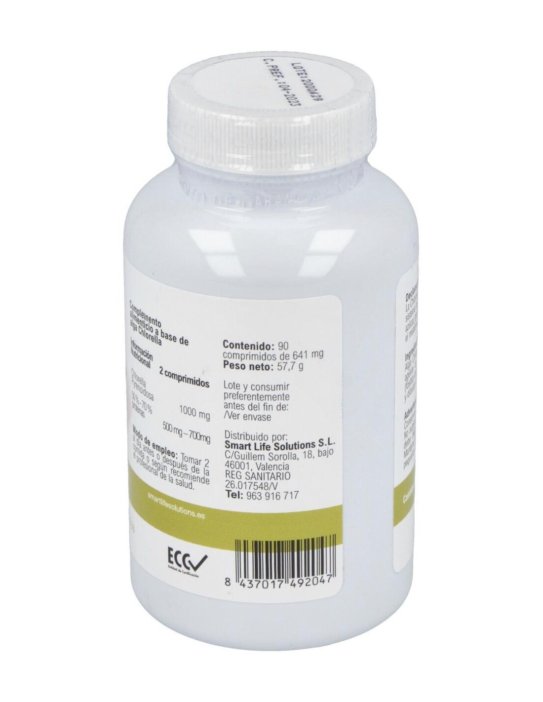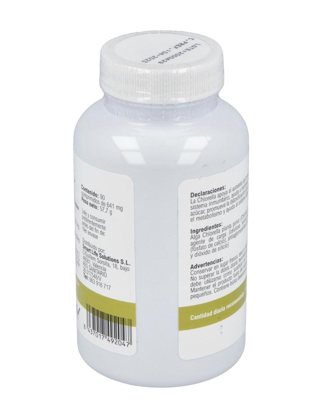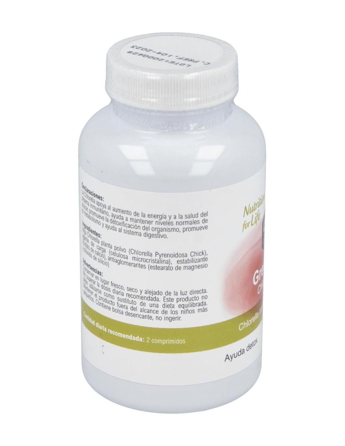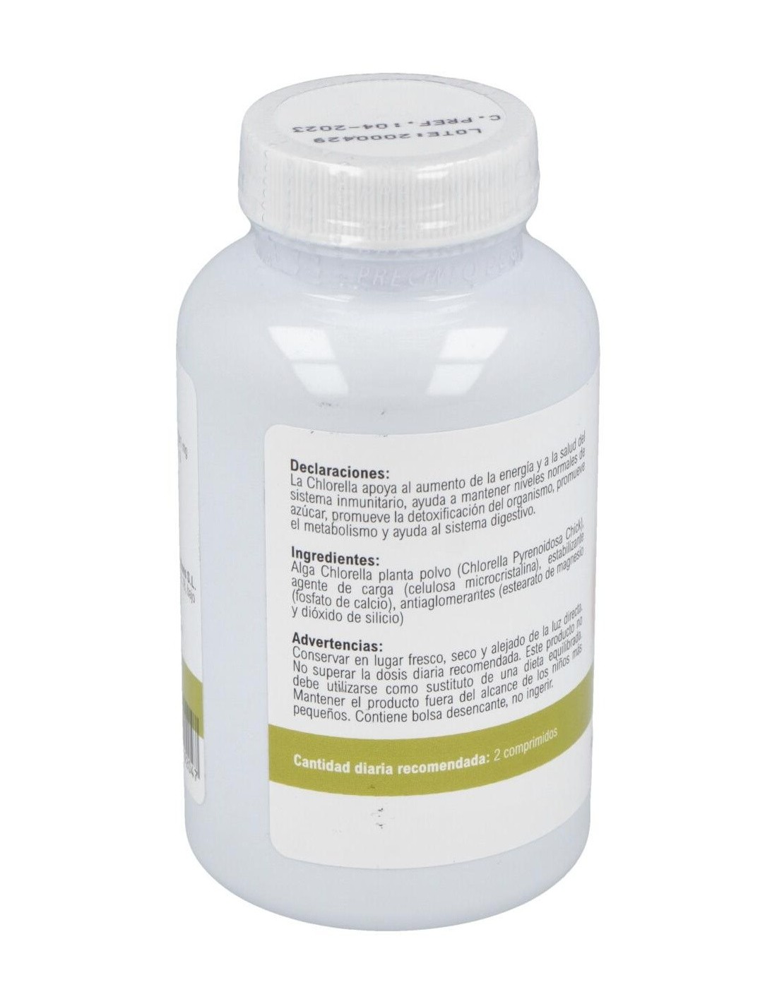 Complemento alimenticio en forma de cápsulas, elaborado a base de polvos de alga chlorella, una microalga verde de agua dulce que aporta un elevado contenido en clorofila y fibra, y ejerce un potente efecto antioxidante sobre el organismo. Ayuda a regular el tránsito intestinal, aporta una gran cantidad de nutrientes y además fortalece el cabello y las uñas.