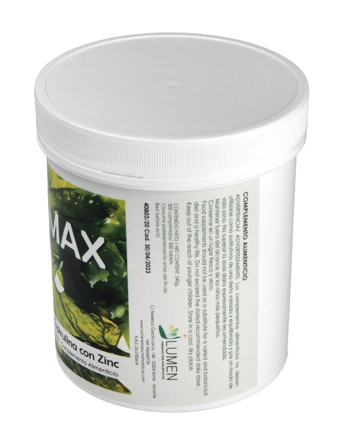 Complemento alimenticio formulado a base de alga espirulina enriquecida con zinc. Se trata de una sustancia rica en vitaminas, proteínas y minerales. Favorece el control del peso corporal en el marco de una dieta saludable. A la espirulina se le atribuye una acción beneficiosa en el mantenimiento de la masa muscular. Indicado para adultos.