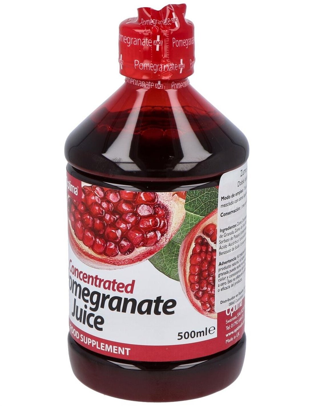 Zumo de Granada concentrado doble fuerza no filtrado, ácido ascórbico, sorbato de potasio, benzoato de sodio.