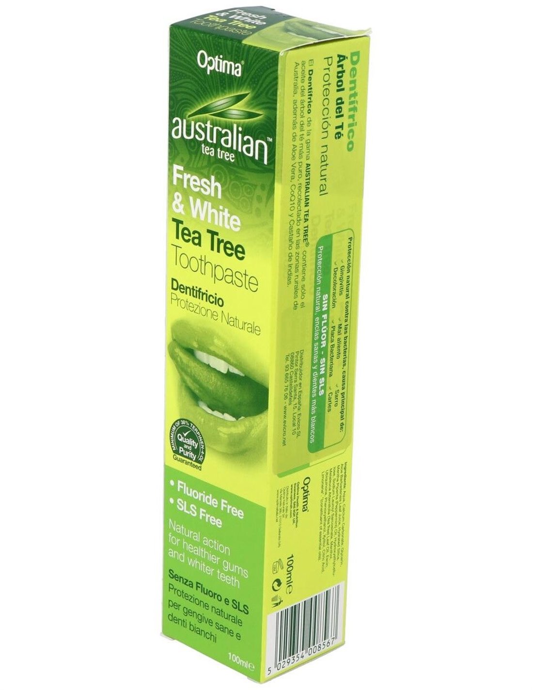 Carbonato de Calcio, Sílice Hidratado, Aloe Barbadensis (Aloe Vera), Melaleuca Alternifolia (Aceite del Árbol del Té), Escin (Castaño de Indias), Ubiquinona (Co-Q-10), Sodio de hydroxymethylglycinate, Xilitol, Ácido cítrico.