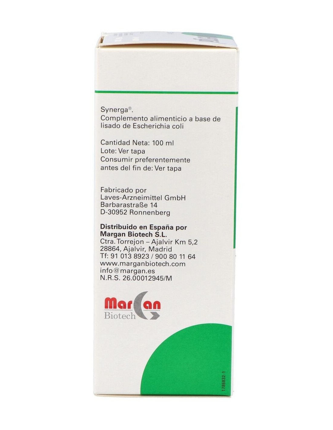 Lisado de Escherichia coli ( cepa Laves1931) 11,05 x 108. Lactosa (procedente de la leche) 0,84g, glucosa 0,07g, cloruro sódico 0,04g, agua purificada. Aditivos: conservante (etanol) 0,26g