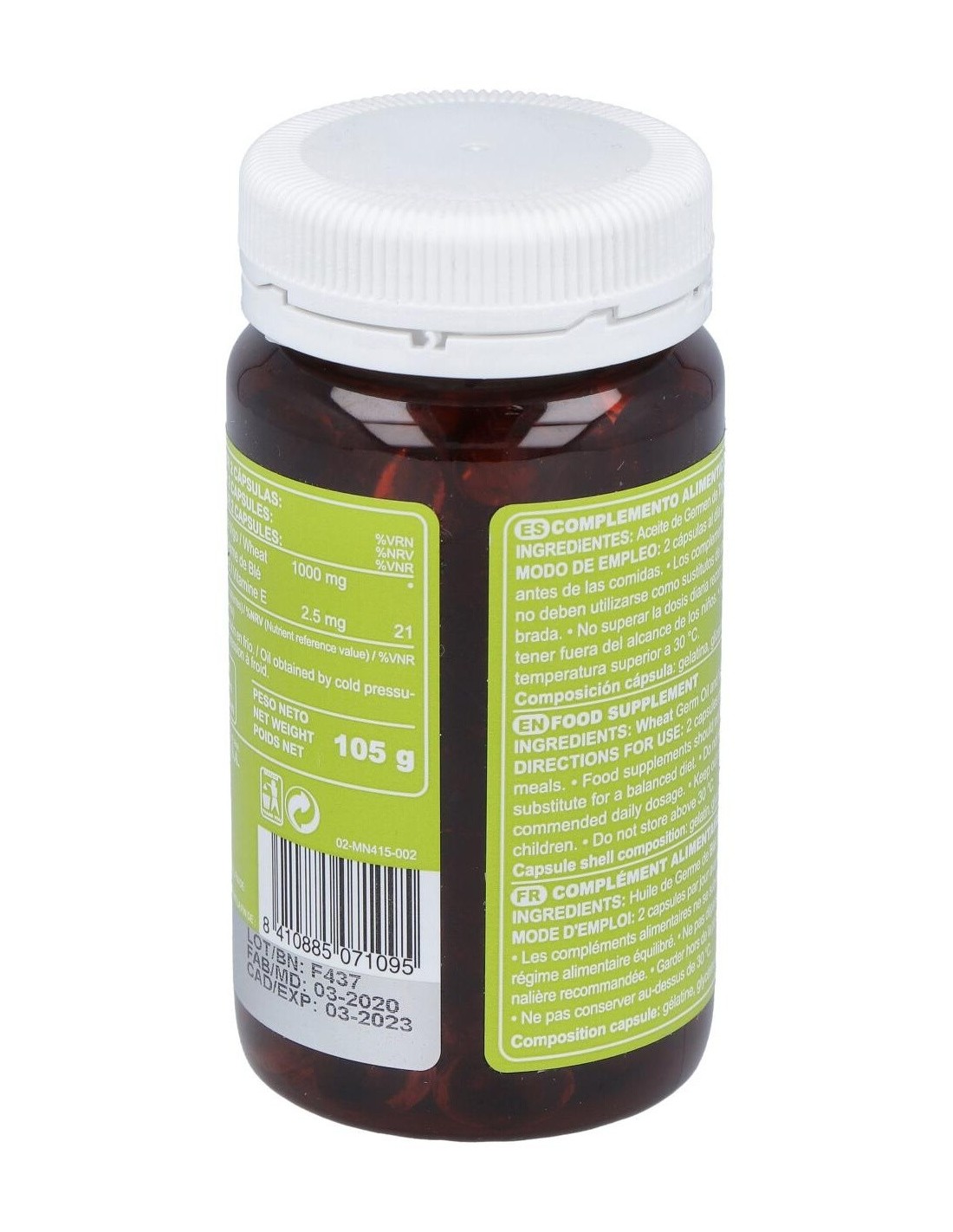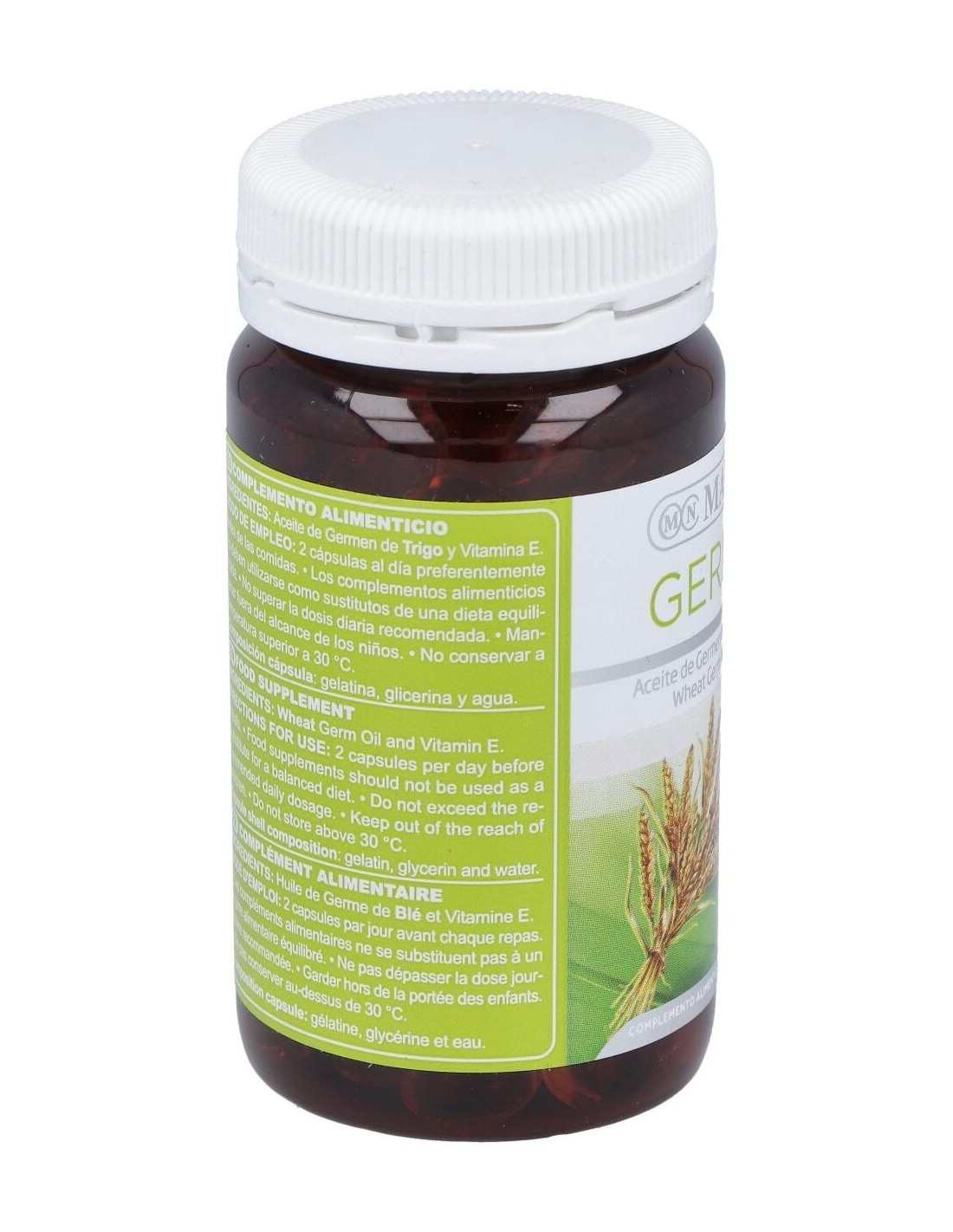 Aceite de germen de trigo* prensado en frío, Vitamina E.
