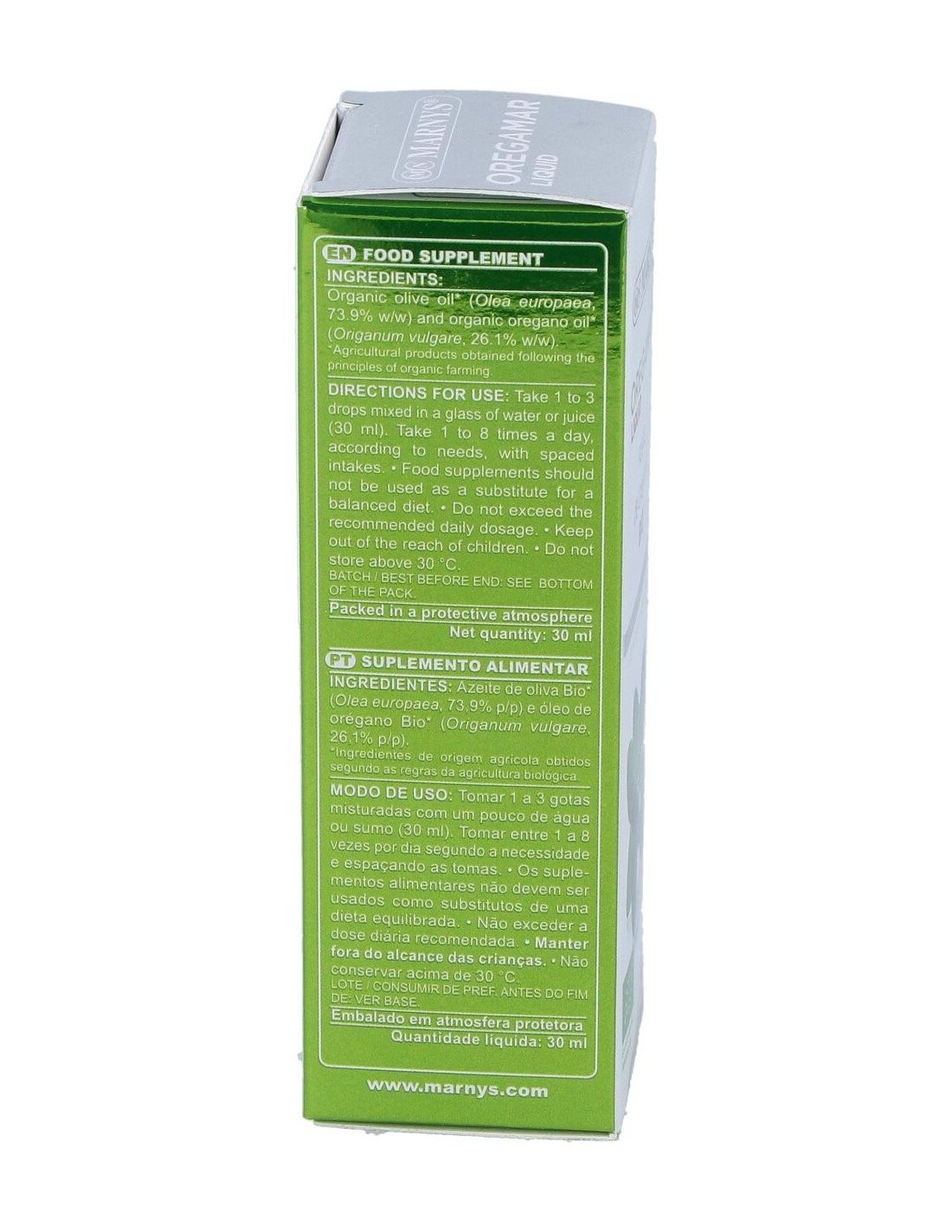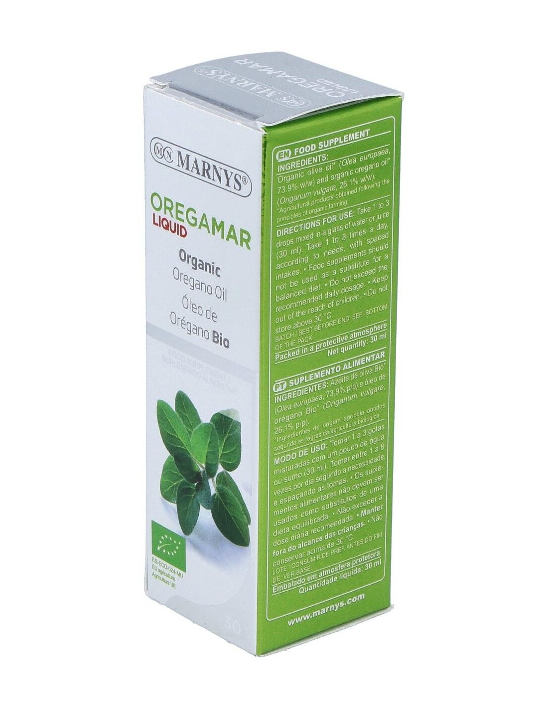 El Aceite de Orégano de Marnys es un producto elaborado con ingredientes de cultivo 100% ecológicos, garantizando su pureza y calidad. Está compuesto por aceite de orégano puro del Mediterráneo (Origanum minutiflorum), y destaca por su alto contenido en principios activos como el carvacrol y el timol, que cuentan con propiedades antisépticas y antibióticas.
