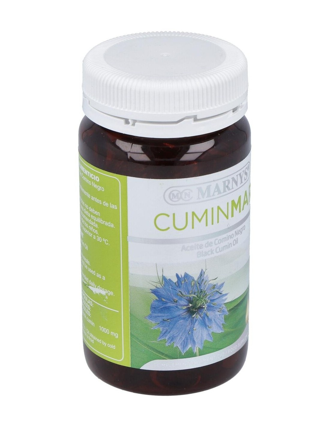 Cápsulas blandas de aceite de Comino Negro obtenido por prensado en frío, que mantiene su contenido natural de Omega 6 y timoquinona. La Timoquinona es un componente volátil del Comino Negro, del grupo de las benzoquinonas, que ha demostrado efectos antioxidantes y otras interesantes bioactividades.