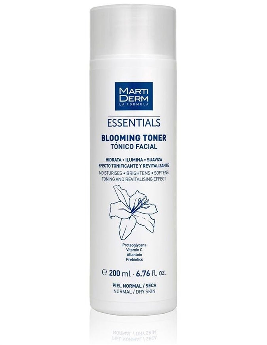 Martiderm Essentials Blooming Toner 200 ml es un tónico facial que facilita la revitalización de la piel. Su fórmula a base de caléndula y extractos de alantoína, contribuye a hidratar y suavizar el cutis, aportando un efecto antioxidante.