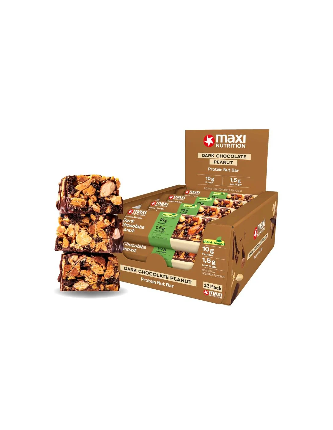 Vegan Protein Nut Bars Dark Chocolate Peanut 46G X 12Ud de Maxinutrition