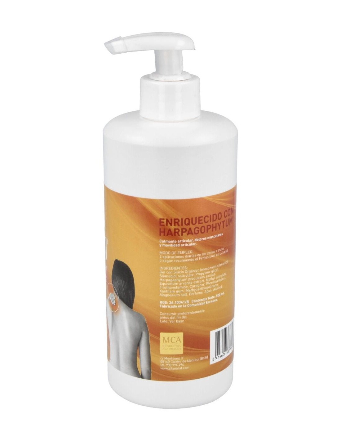 Gel articular con base de silicio Orgánico enriquecido con Harpagophytum. Calmante articular en dolores musculares, mejora de la movilidad articular y gran poder antiinflamatorio.