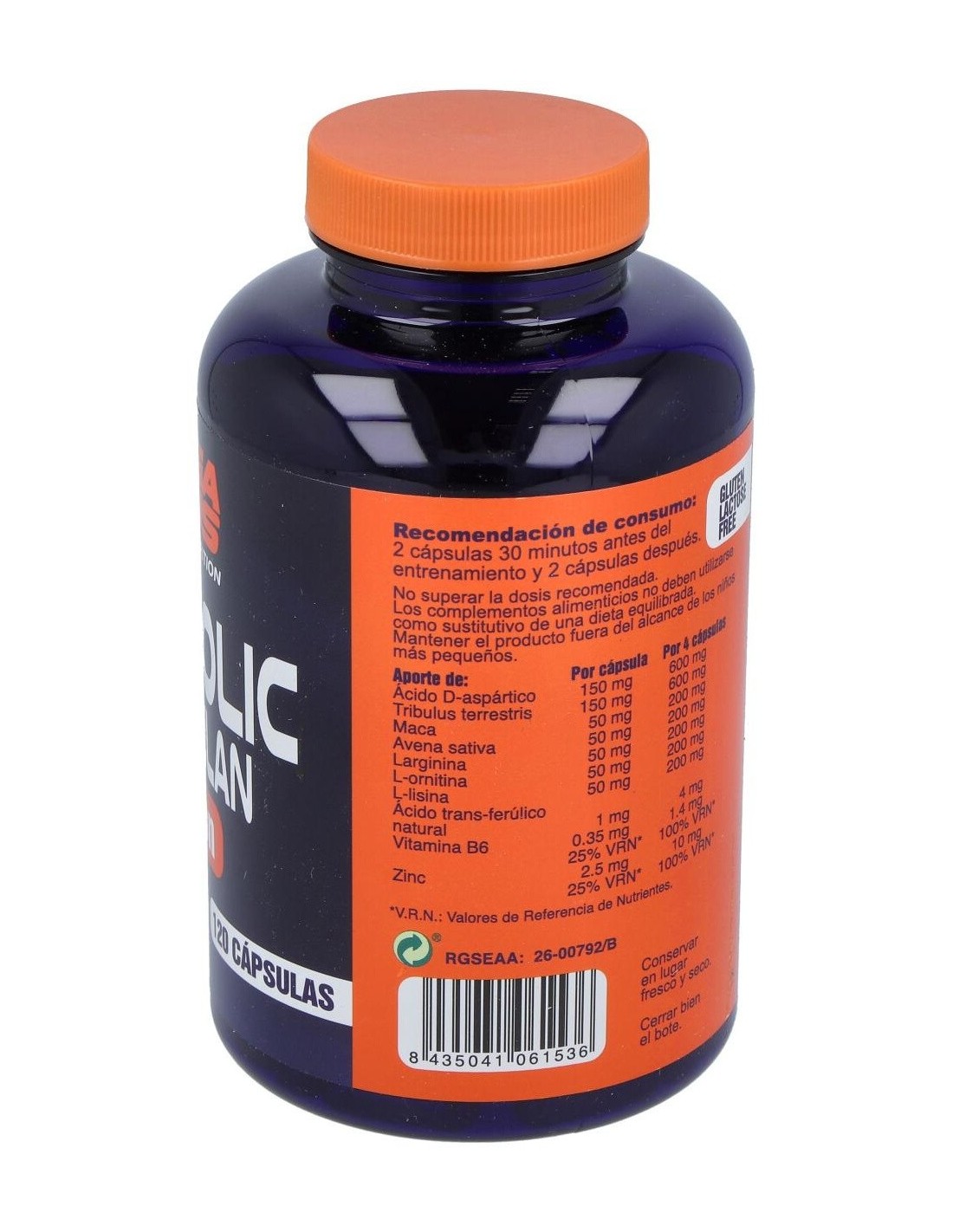 Ácido L-aspártico, tribulus terrestris, cápsula [gelatina comestible, colorante (dióxido de titanio)], estabilizador (celulosa microcristalina), Lepidium meyenni (maca), avena sativa, L-arginina, L-ornitina, L-lisina, emulgente (sales magnésicas de ácidos grasos), sulfato de cinc, antiaglomerante (dióxido de silicio), ácido trans-ferúlico natural, clorhidrato de piridoxina (vitamina B6).