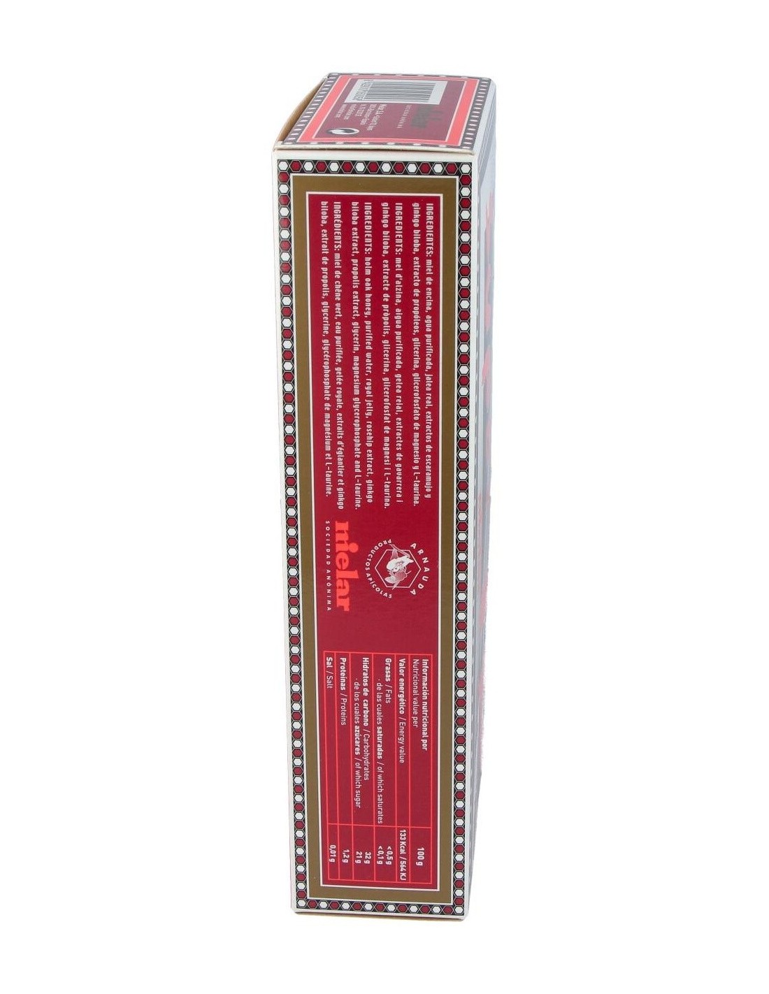 Miel de encina, agua purificada, jalea real, extractos de escaramujo y ginkgo biloba, extracto de propóleos, glicerina, glicerofosfato de magnesio y L-taurina.