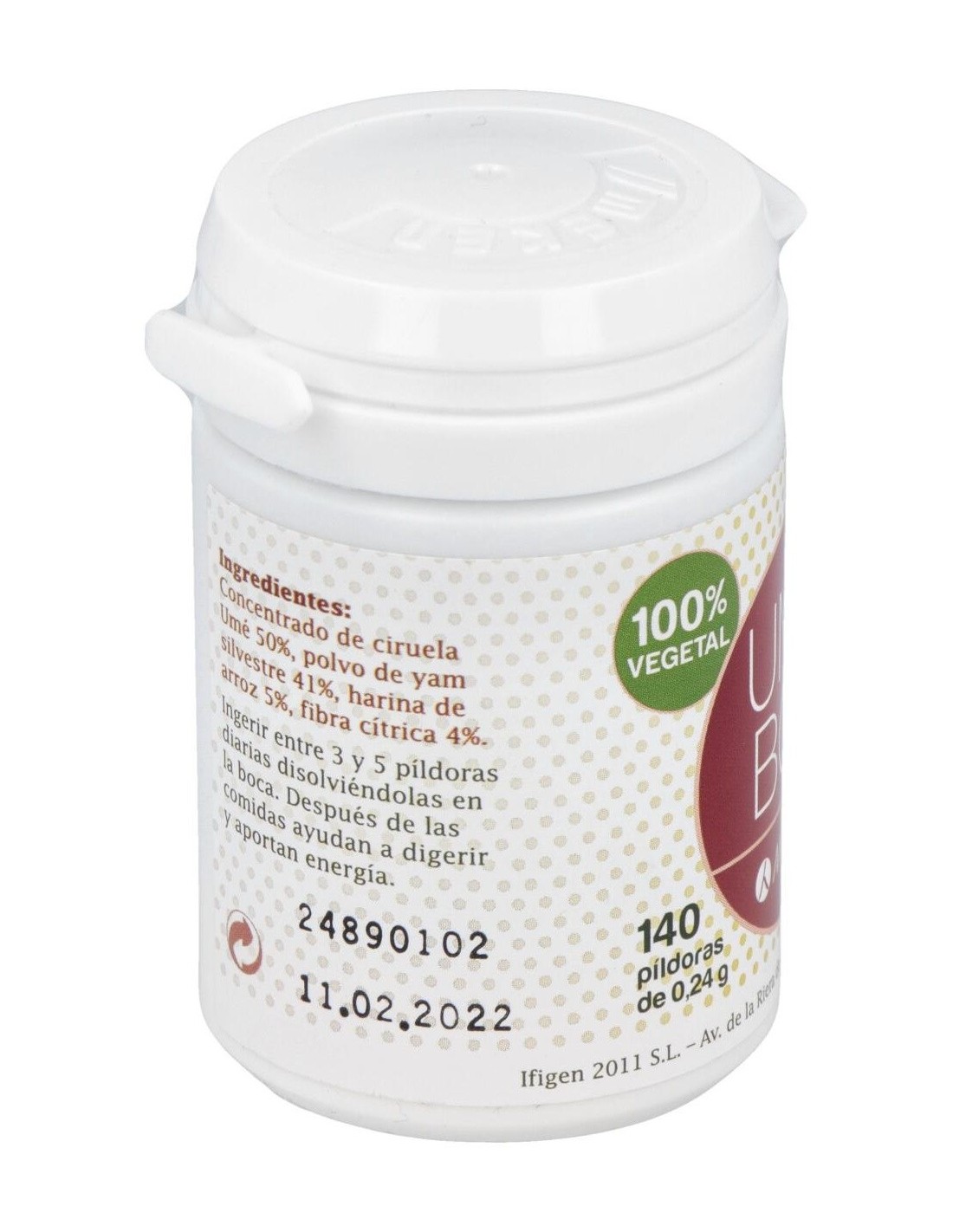 Combinación de extracto de ciruela Umé y jinenjo (patata salvaje). Producto típico japonés, fácil de tomar y con buen sabor. Se presenta en forma de píldoras que hay que disolver en la boca. El Umebol presenta las cualidades de la Umeboshi incrementadas cinco veces y apoya, además, el mantenimiento de unos niveles adecuados de energía.