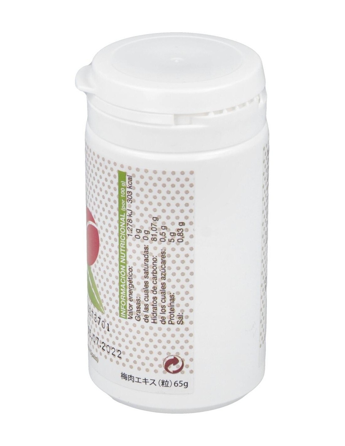Concentrado de ciruela umé (50%), Polvo de jinenjo (41%), Harina de arroz (5%) Fibra de cítrico (4%).