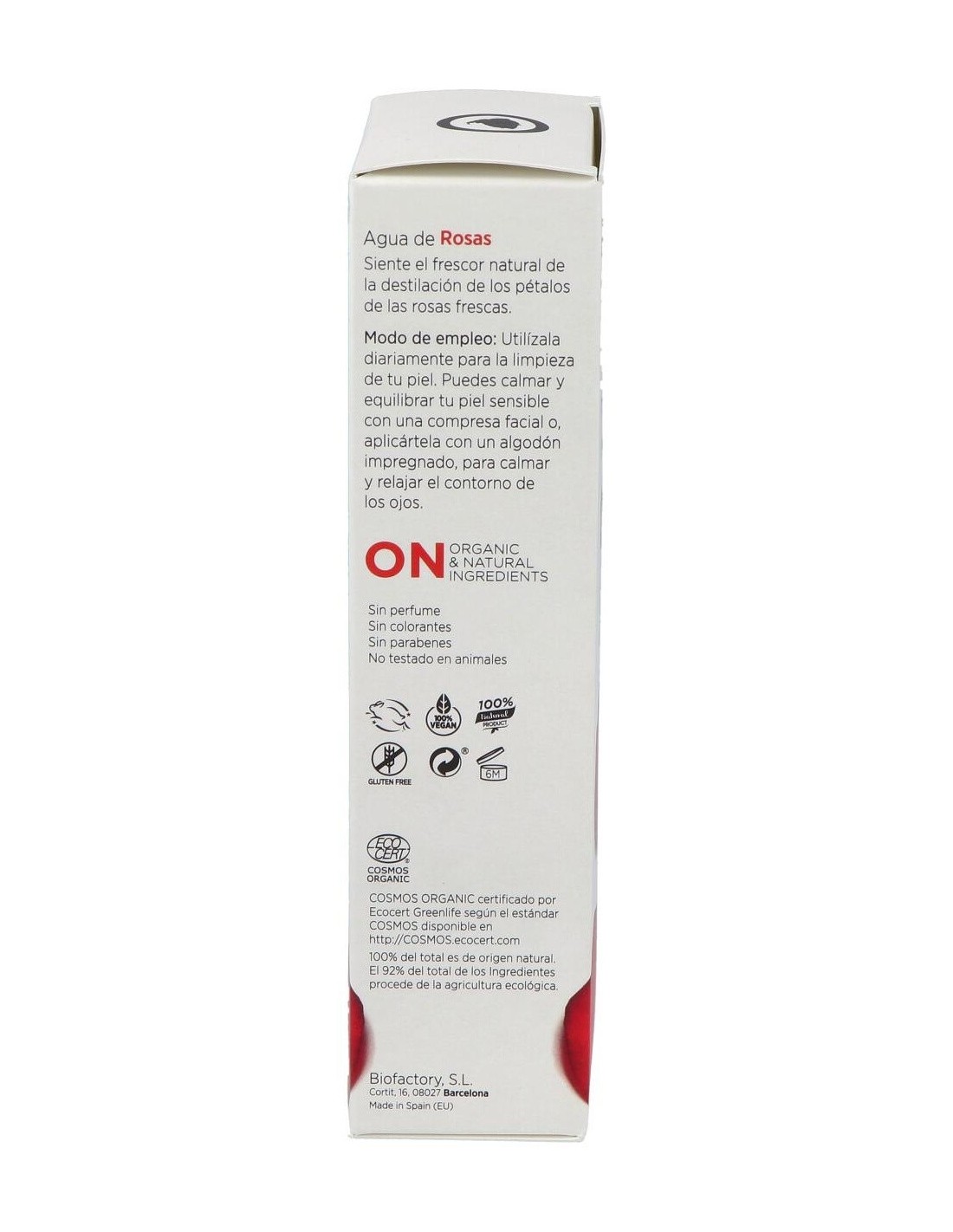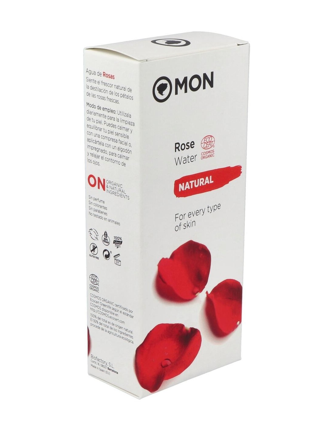 Tónico facial Agua de Rosas ecológica certificada por Ecocert, compuesta exclusivamente por destilado o hidrolato de pétalos de rosas frescas con propiedades calmantes y refrescantes. Para descongestionar y refrescar la piel de la cara. Ideal para el cuidado y la limpieza diaria de todo tipo de pieles, en especial para las más sensibles 100% del total es de origen natural. Formulado por destilado o hidrolato de pétalos de rosas frescas con propiedades calmantes y refrescantes.