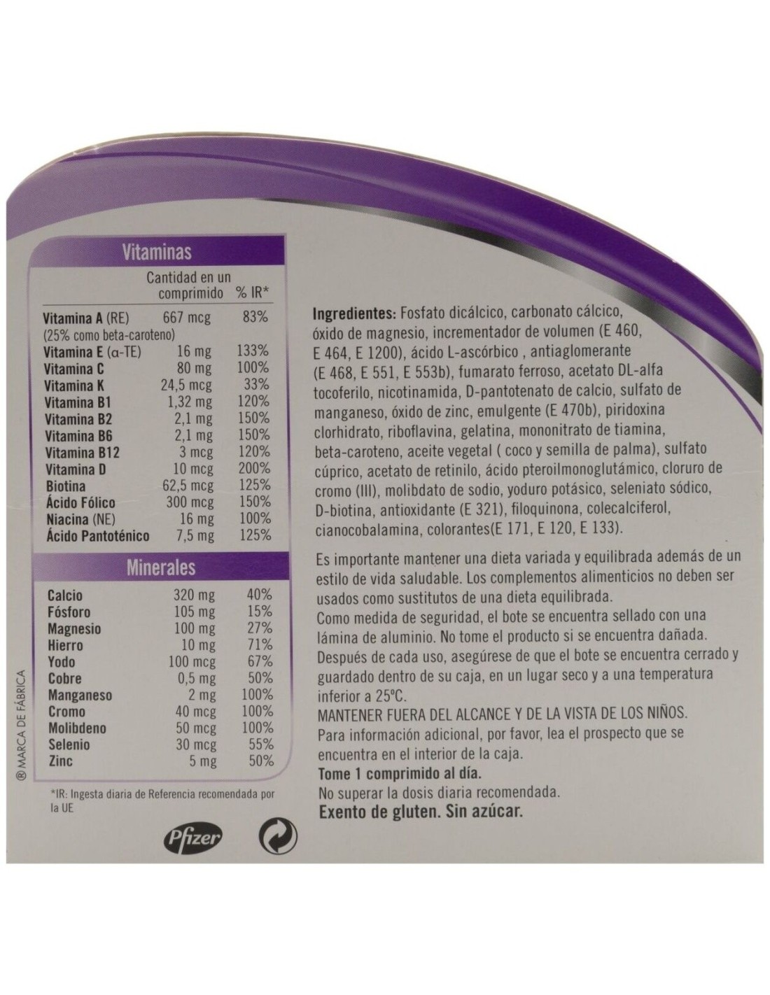 Complemento alimenticio con vitaminas y minerales ideal para mujeres a partir de 18 años. Ayuda a cubrir las necesidades nutricionales de las mujeres y aporta una gran variedad de vitaminas y minerales para complementar la alimentación de una forma óptima. Con alto contenido en vitamina D, que ayuda al mantenimiento de los huesos en condiciones normales y Hierro para hacer frente a las pérdidas de sangre que se producen durante la menstruación y antioxidantes para el correcto mantenimiento de la piel, cabello y uñas.