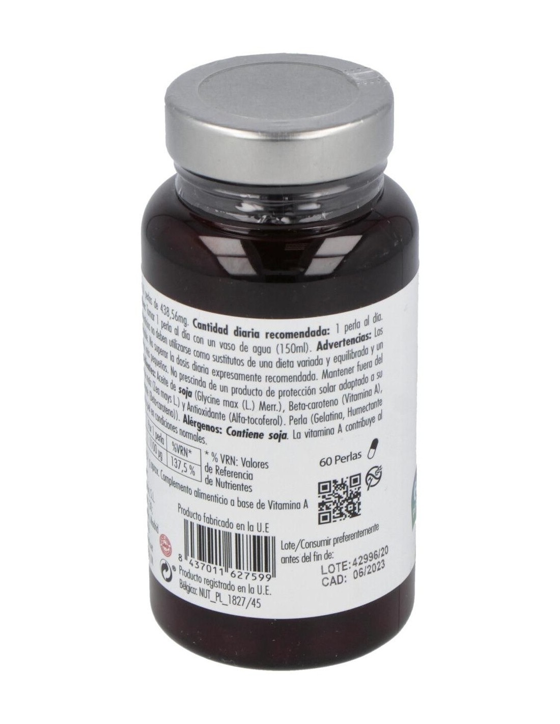 Complemento alimenticio a base de vitamina A. La vitamina A contribuye al mantenimiento de la piel en condiciones normales.