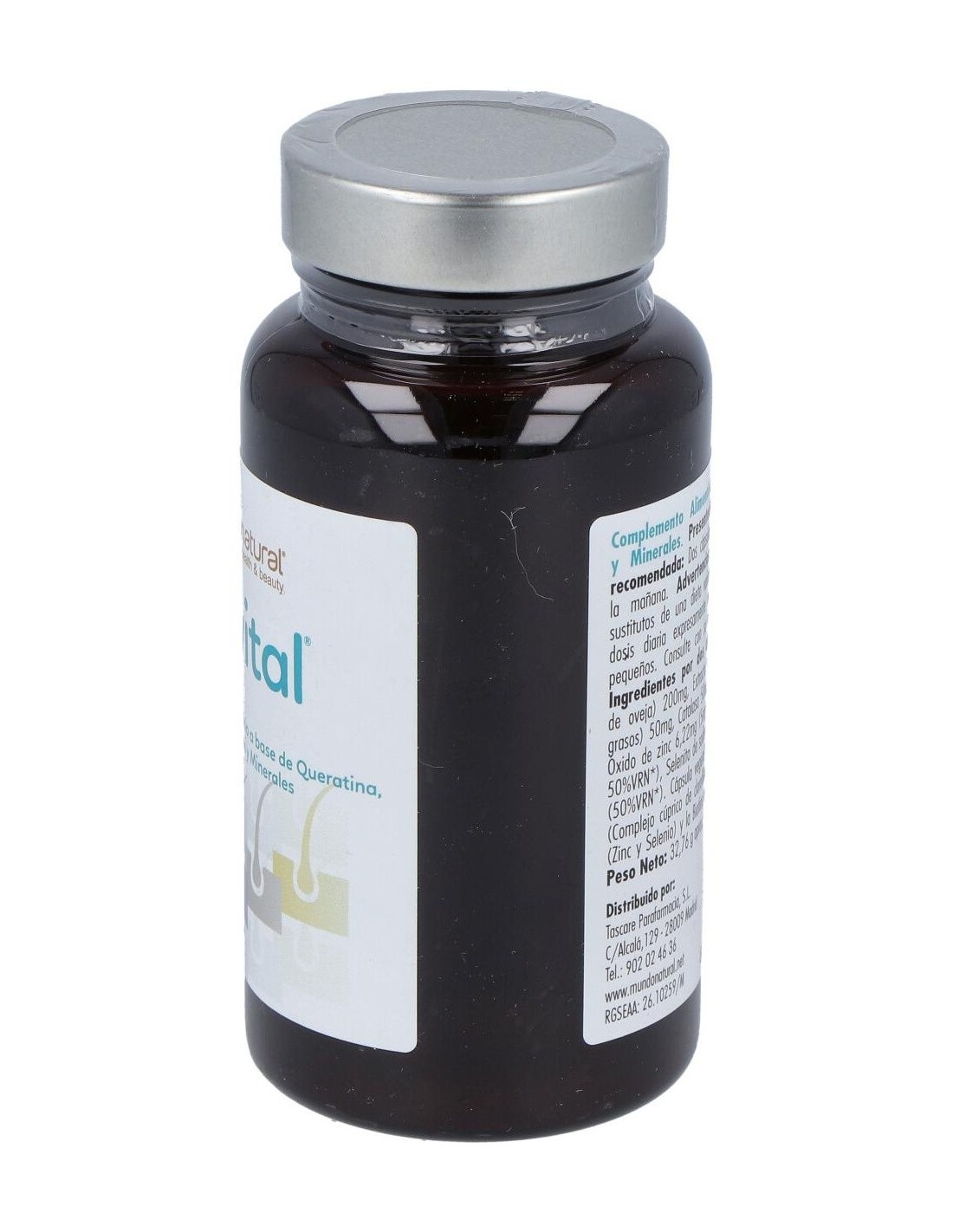 Producto que refuerza la salud cutánea, capilar y de las uñas, favoreciendo además el crecimiento del cabello. Es un suplemento alimentario a base de Queratina, Sabal, Catalasa, Biotina y minerales. Contiene Cynatine® recomendado para el cuidado del pelo. Su aporte de cobre es relevante para la pigmentación tanto del cabello como de la piel el zinc previene las uñas quebradizas, la resequedad cutánea así como también es efectivo frente a los síntomas del acné y debilidad de la piel.