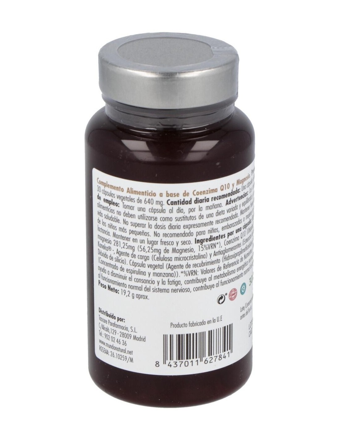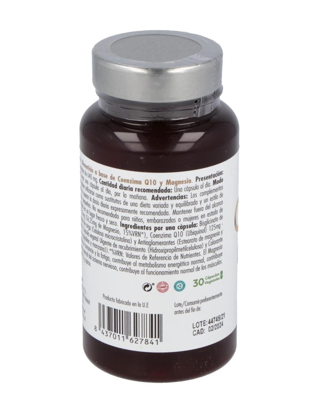 Complemento alimenticio a base de magnesio, Vitamina C y coenzima Q10 que contribuye al funcionamiento normal del sistema nervioso, a tener un buen mantenimiento del metabolismo energético haciendo que los músculos funcionen de forma correcta. Ayuda a reducir el cansancio y la fatiga diaria. No apto durante la lactancia o mujeres embarazadas. No apto para niños.