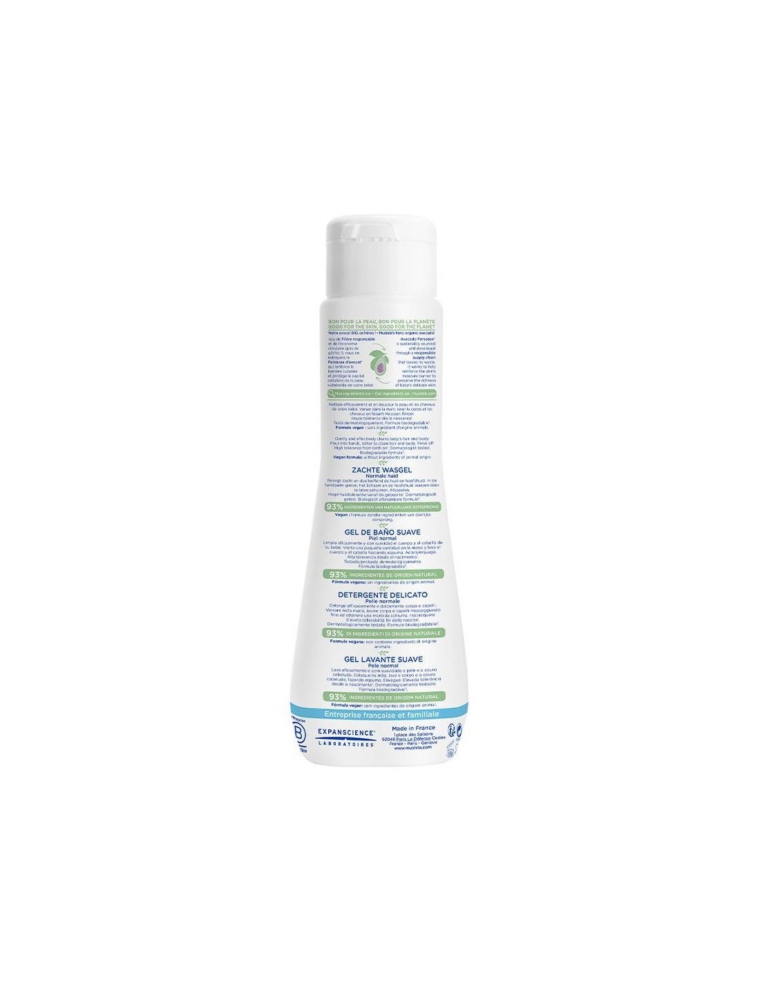 Limpia la cara, el cuerpo y el cabello de recién nacidos, bebés y niños. La delicada fórmula con aguacate Bio protege y respeta la piel de los niños y se puede utilizar a diario desde el nacimiento. Tiene alta tolerancia testada, suaviza y compensa los efectos resecantes del agua.