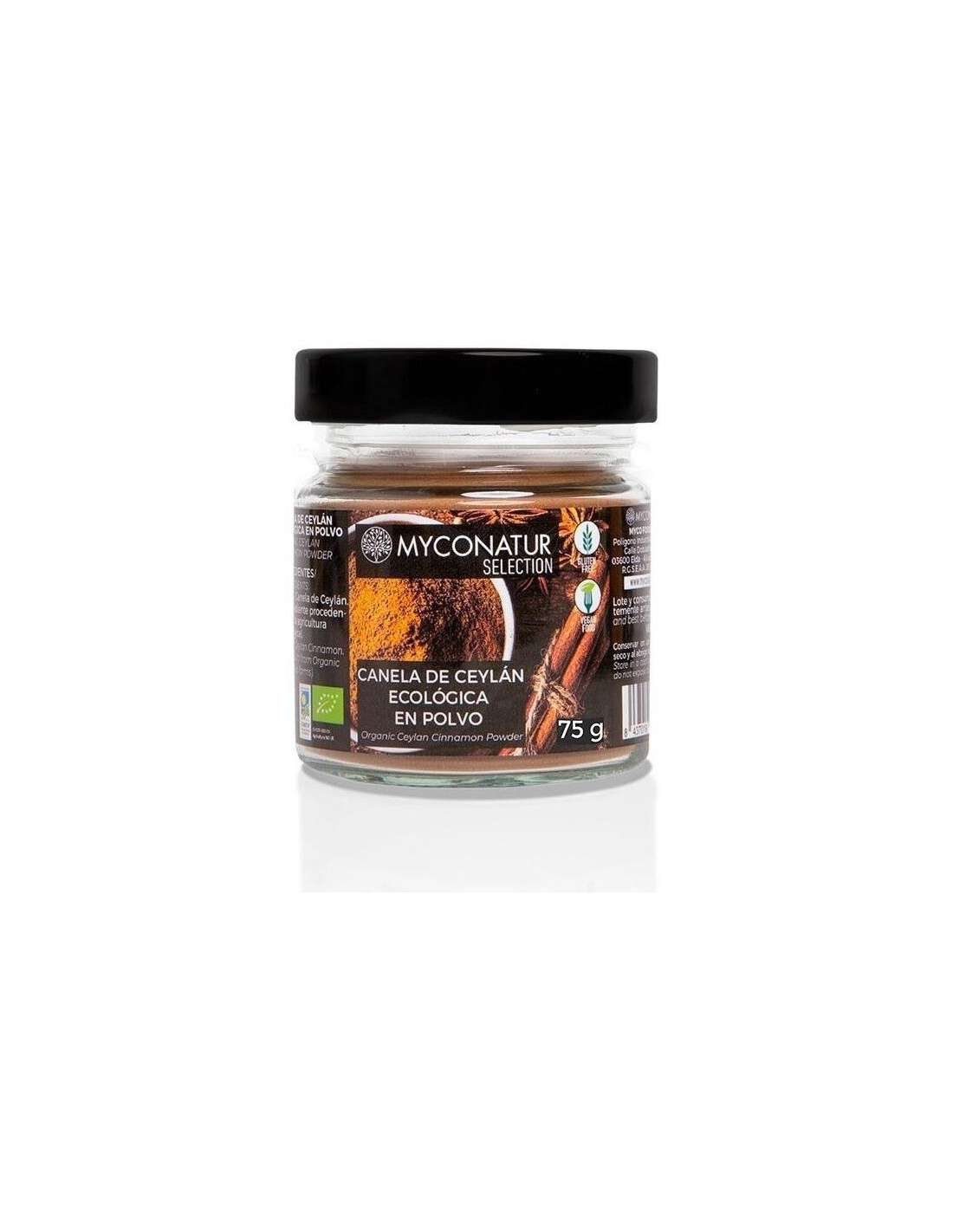 100% Canela de Ceylán, procedente de la agricultura ecológica.\ \ Valor nutricional por 100 g:\ Valor energético: 1555 kJ/ 373 kcal\ Grasas: 3,2 g\ De las cuales saturadas: 0,7 g\ Hidratos de carbono: 81 g\ De los cuales azúcares: 6,3 g\ Fibra alimentaria: 54 g\ Proteína: 3,9 g\ Sal: 0,03 g