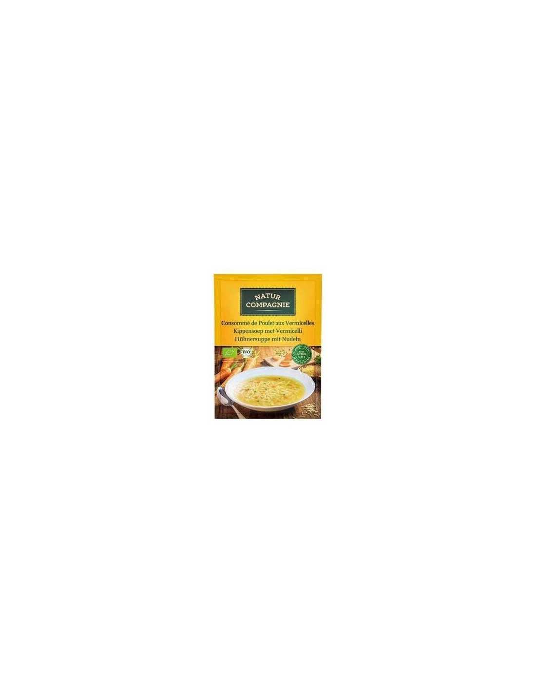 Sopa de pollo con fideos finos y zanahorias, que juntos portan un delicioso sabor. Elaborada por Natur Compgnie que tiene años creando recetas deliciosas con la mejor calidad orgánica y que se pueden preparar rápidamente. Utilizan materia prima seleccionada cuidadosamente, procedente de la agricultura ecológica controlada y procesada con gran cuidado.