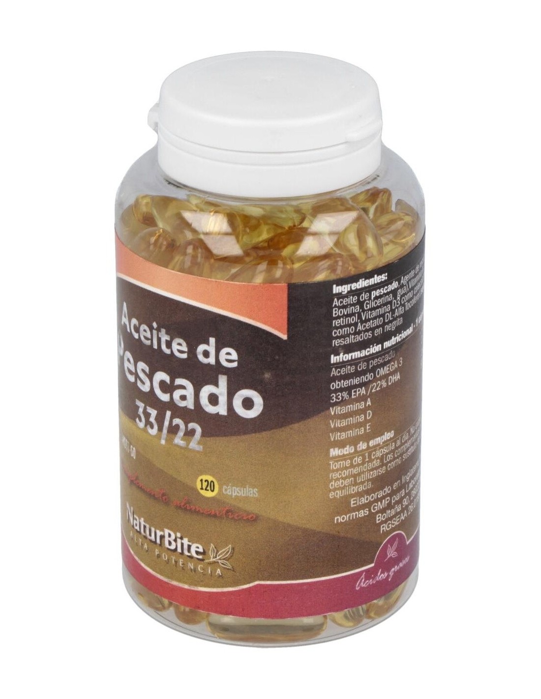 Aceite de Pescado 1000mg 33/22, 120 Caps. Gel de NaturBite