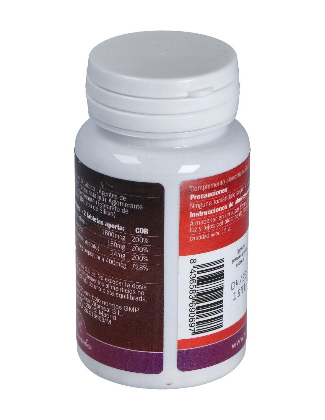 Vitamina A (acetato de retinol) 800 mcg, Vitamina C (ácido ascórbico) 80 mg,